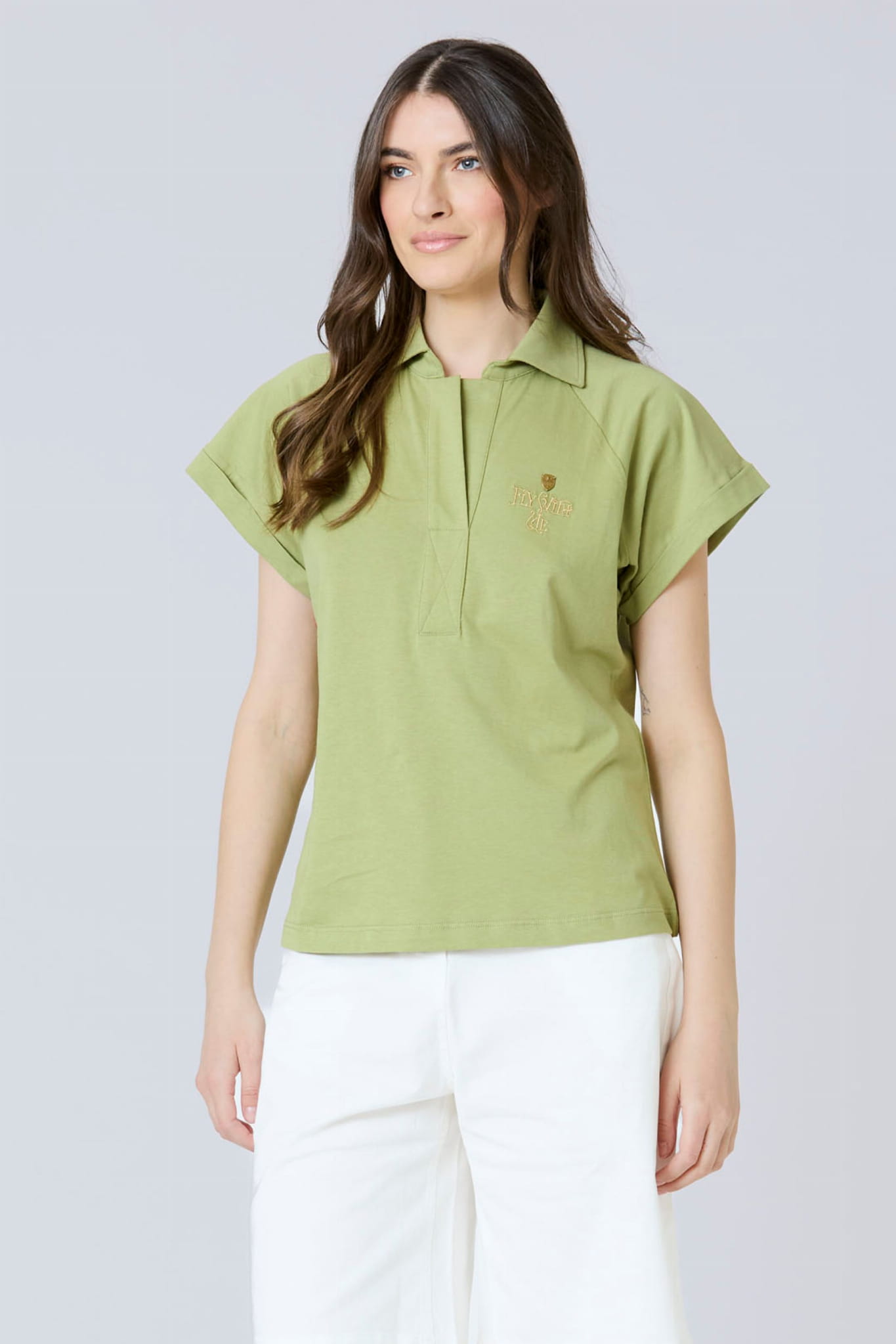 Damska koszulka polo marki Aeronautica Militare, w kolorze zielonym.