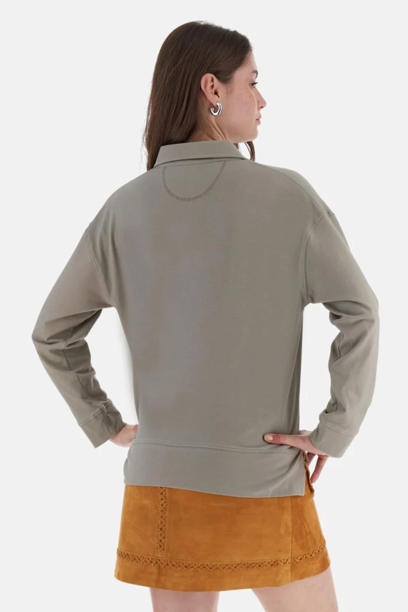 Damska koszulka polo z długim rękawem i kołnierzykiem marki La Martina, w kolorze szarym.