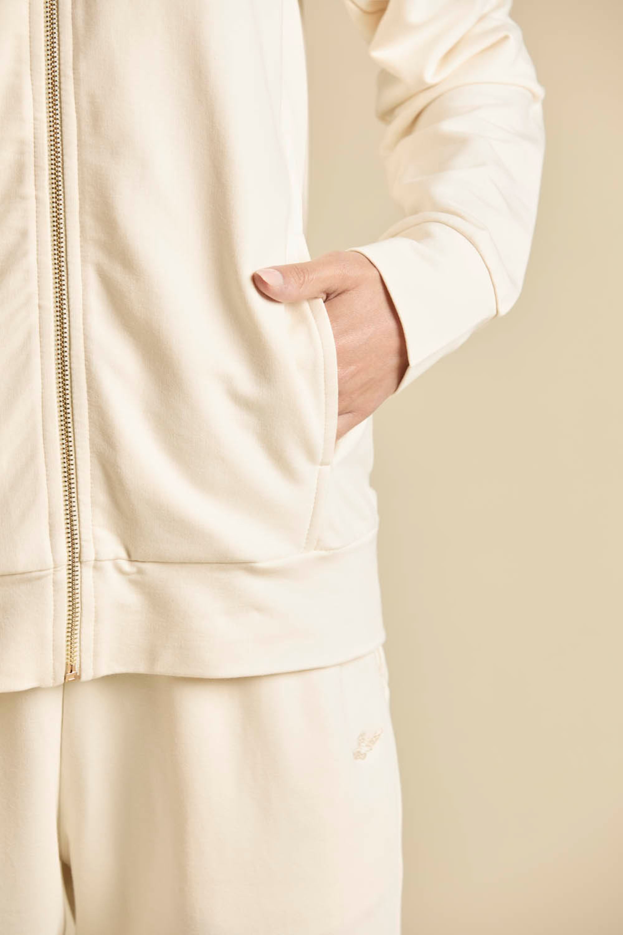⇒ Ponadczasowy design i jednolity kremowy kolor sprawią, że bluza idealnie będzie komponować się z dresami, jeansami czy bermudami z kolekcji, co daje nieograniczone możliwości w tworzeniu niezwykłych i przyciągających wzrok stylizacji.