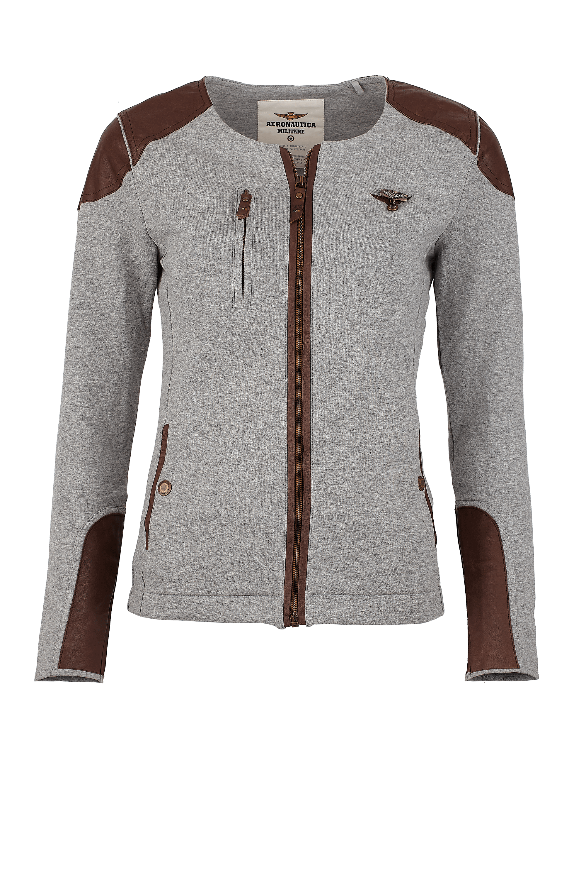 Damska rozpinana bluza ze skórzanymi wstawkami marki Aeronautica Militare, w kolorze szarym.
