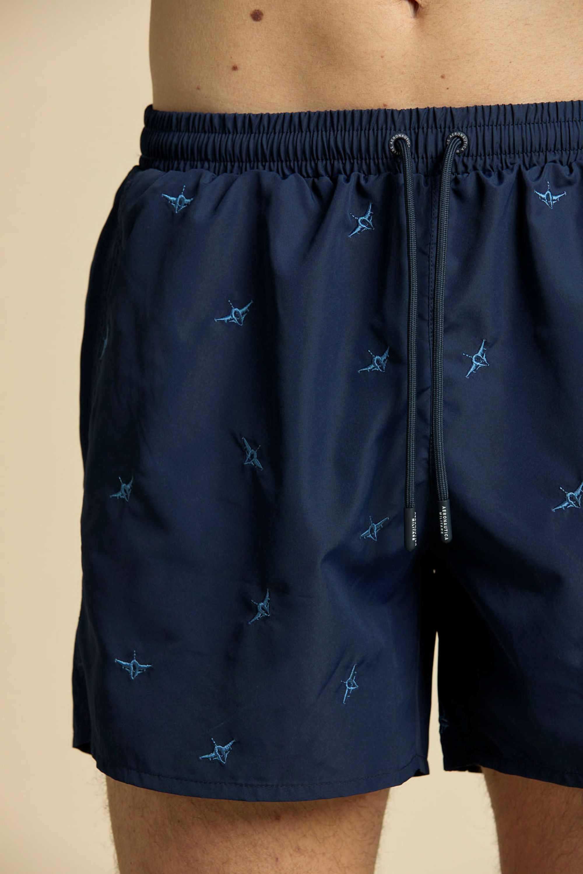 ⇒ Żywy i oryginalny haft na całej powierzchni definiuje ten męski strój kąpielowy.