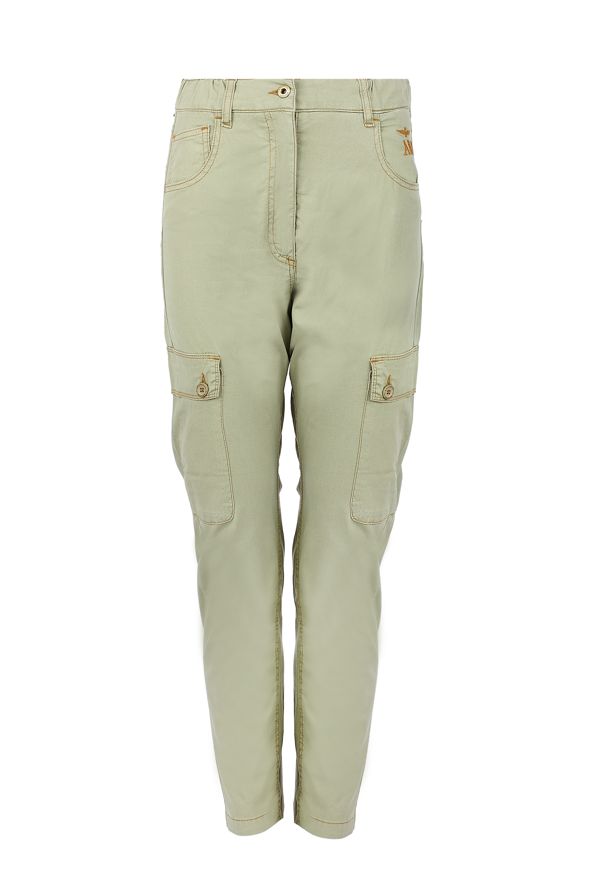 Damskie długie spodnie typu cargo marki Aeronautica Militare, w kolorze jasnej zieleni.