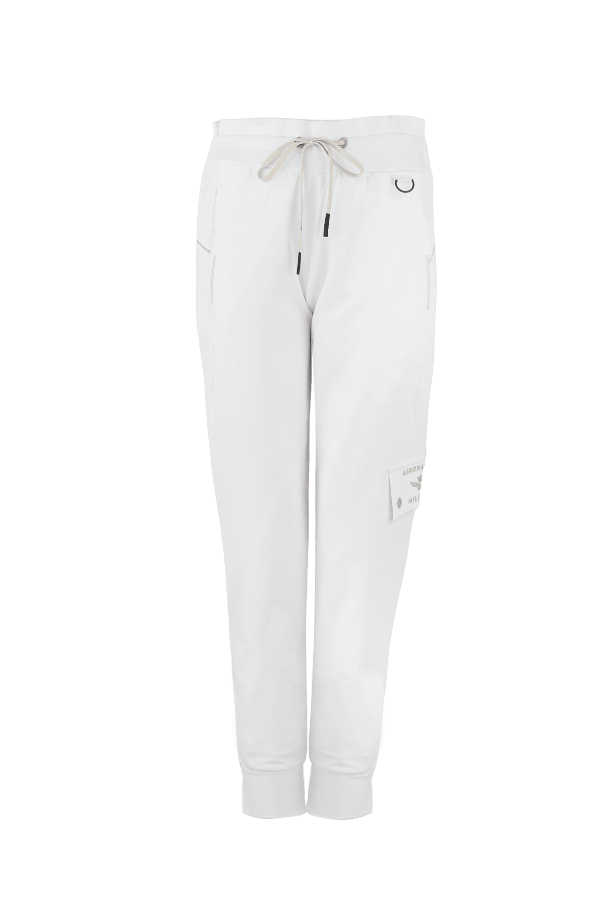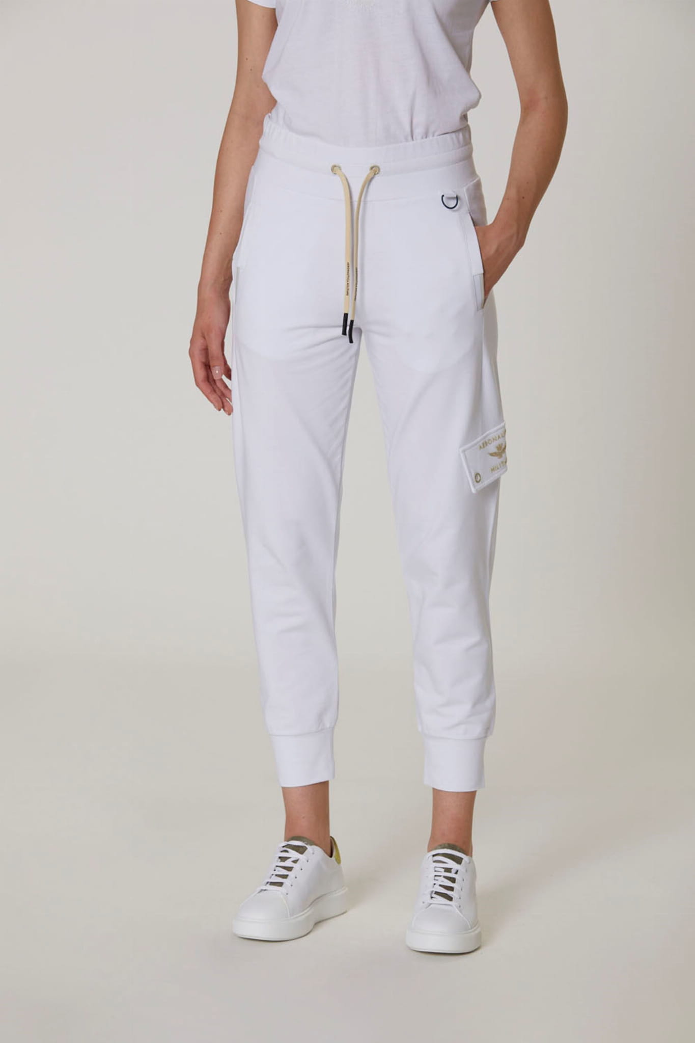 Damskie spodnie dresowe marki Aeronautica Militare, w kolorze białym.
