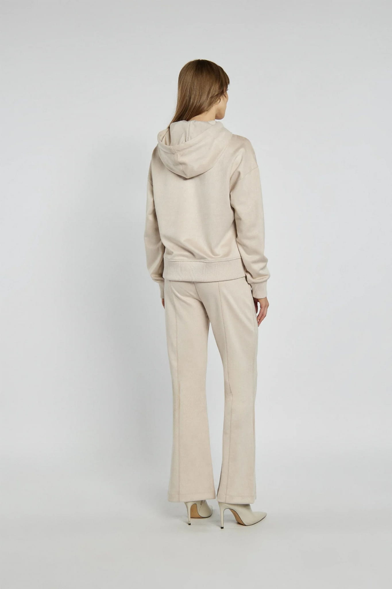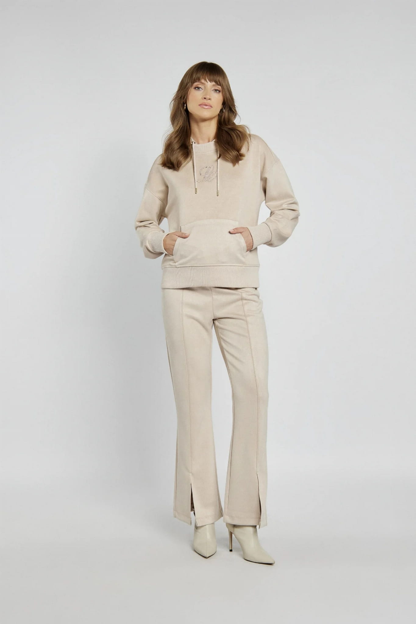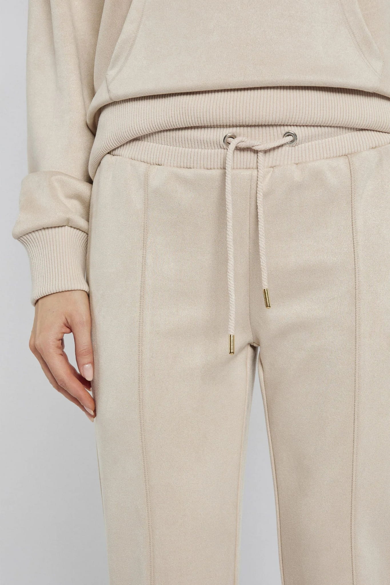 Damskie długie spodnie dresowe typu flare marki Campione, w kolorze beżowym.