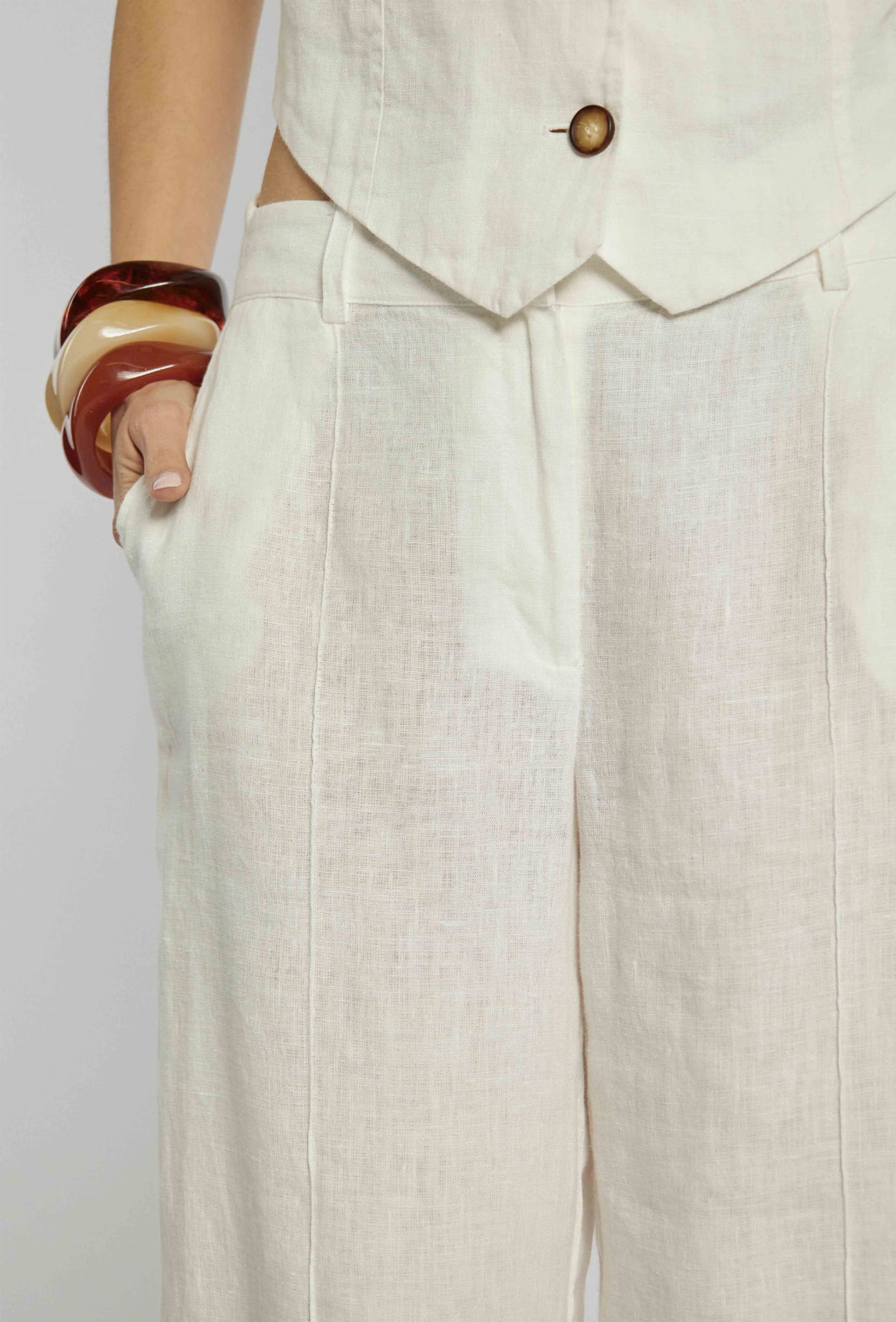 ⇒ Efektowne zaszewki na całej długości z przodu spodni.