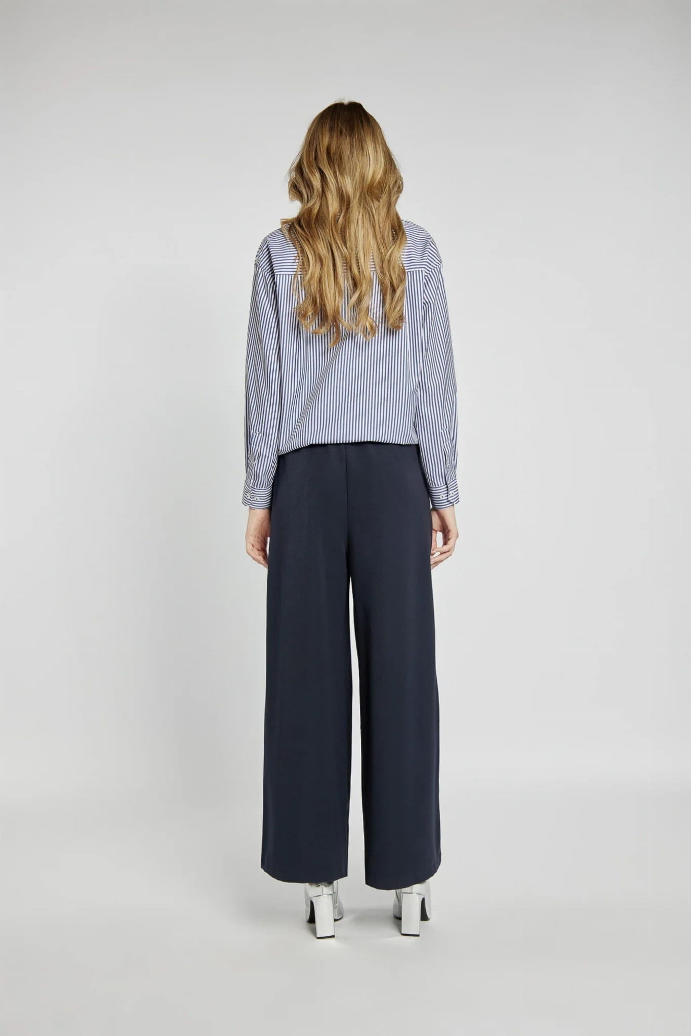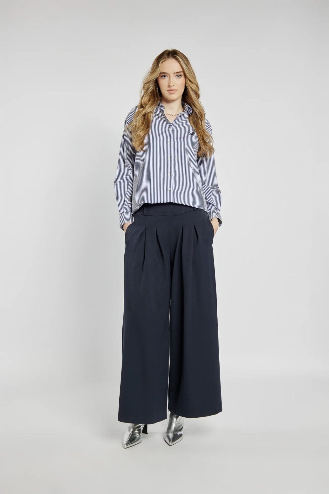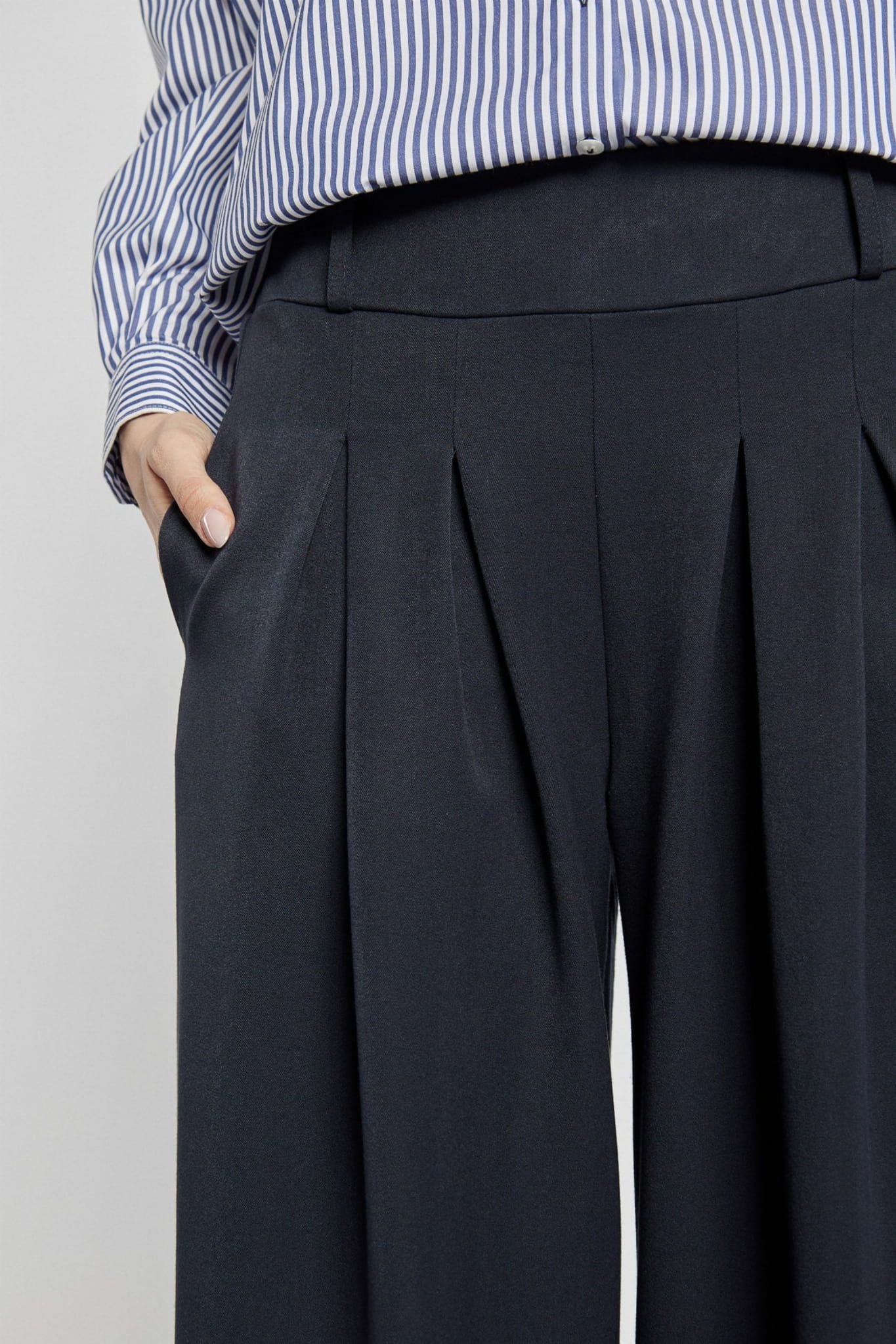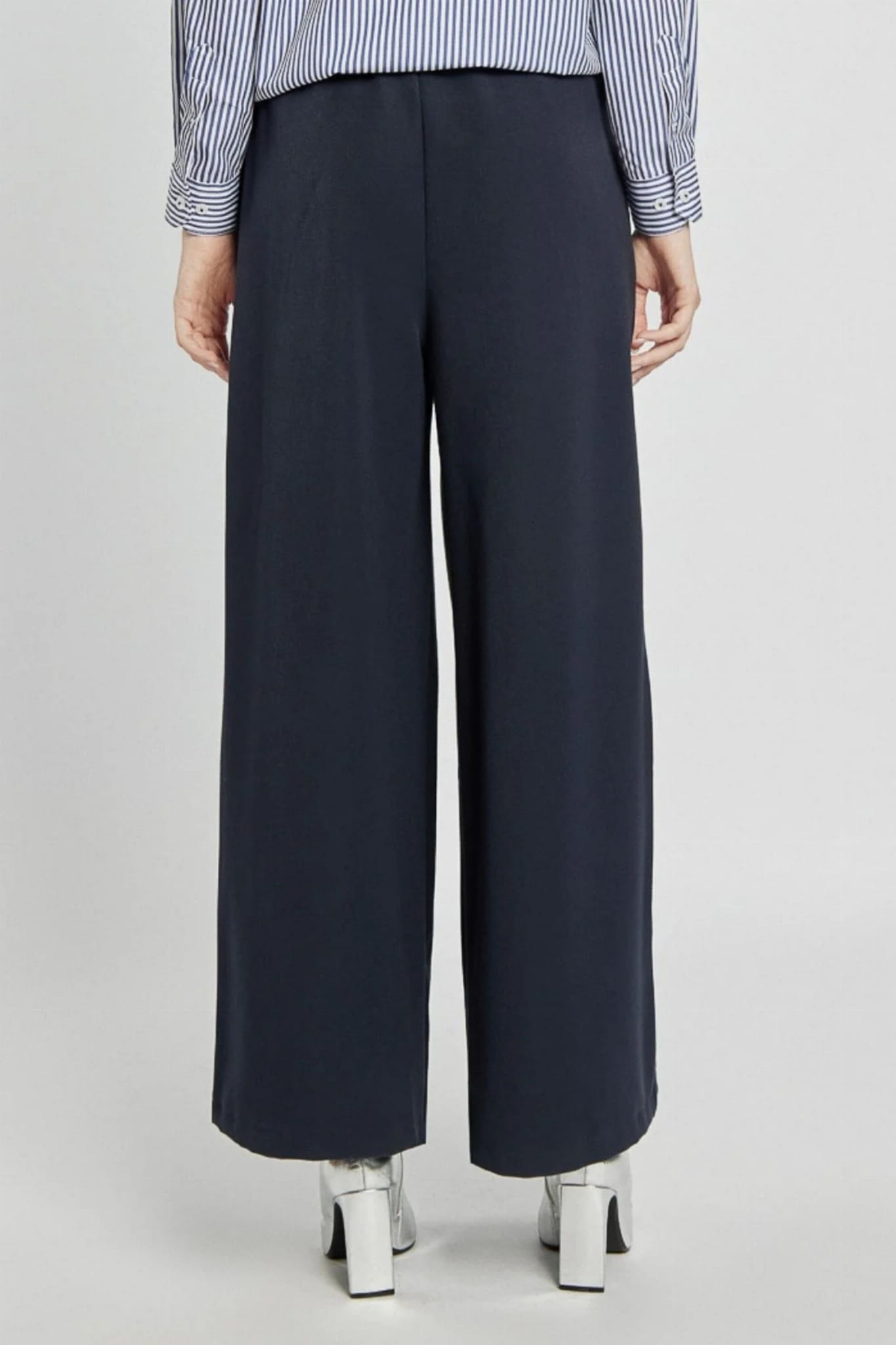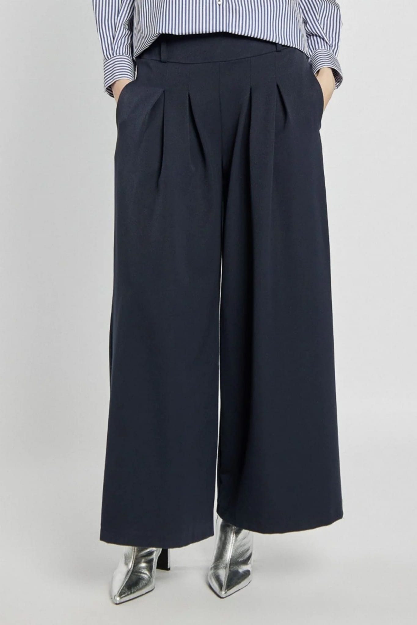 Damskie długie spodnie palazzo z szeroką nogawką marki Campione, w kolorze granatowym.