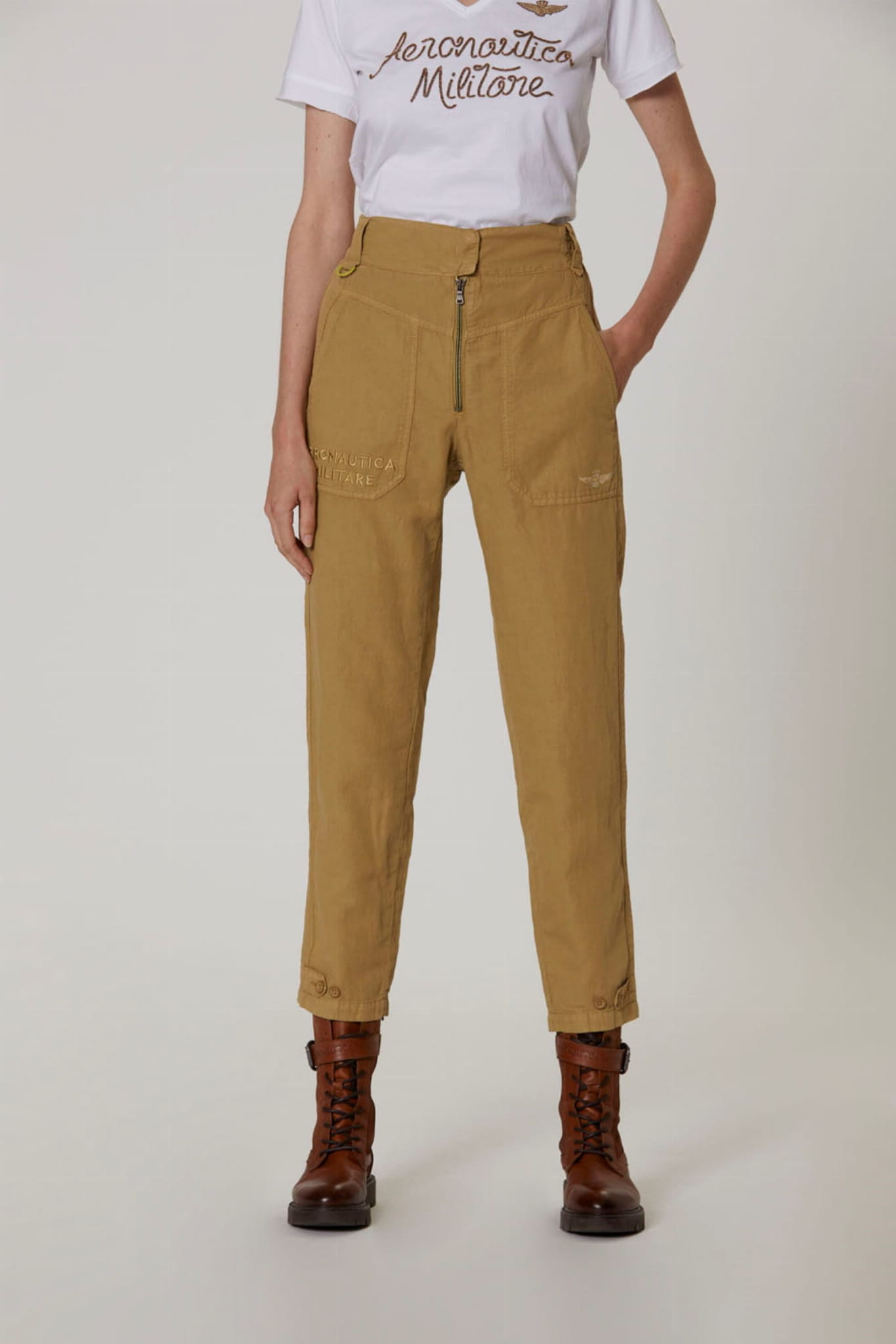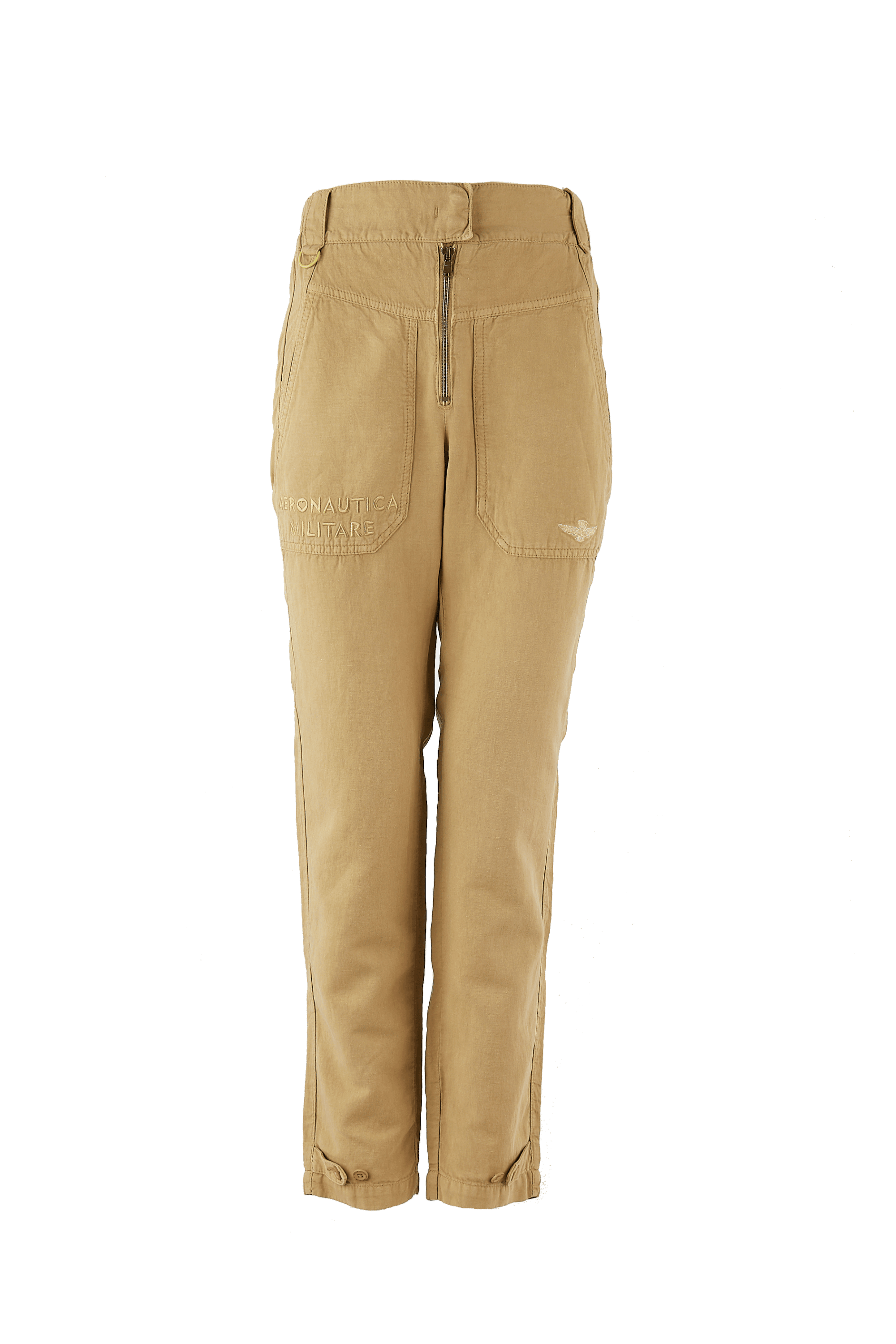 Damskie spodnie marki Aeronautica Militare, w kolorze khaki.