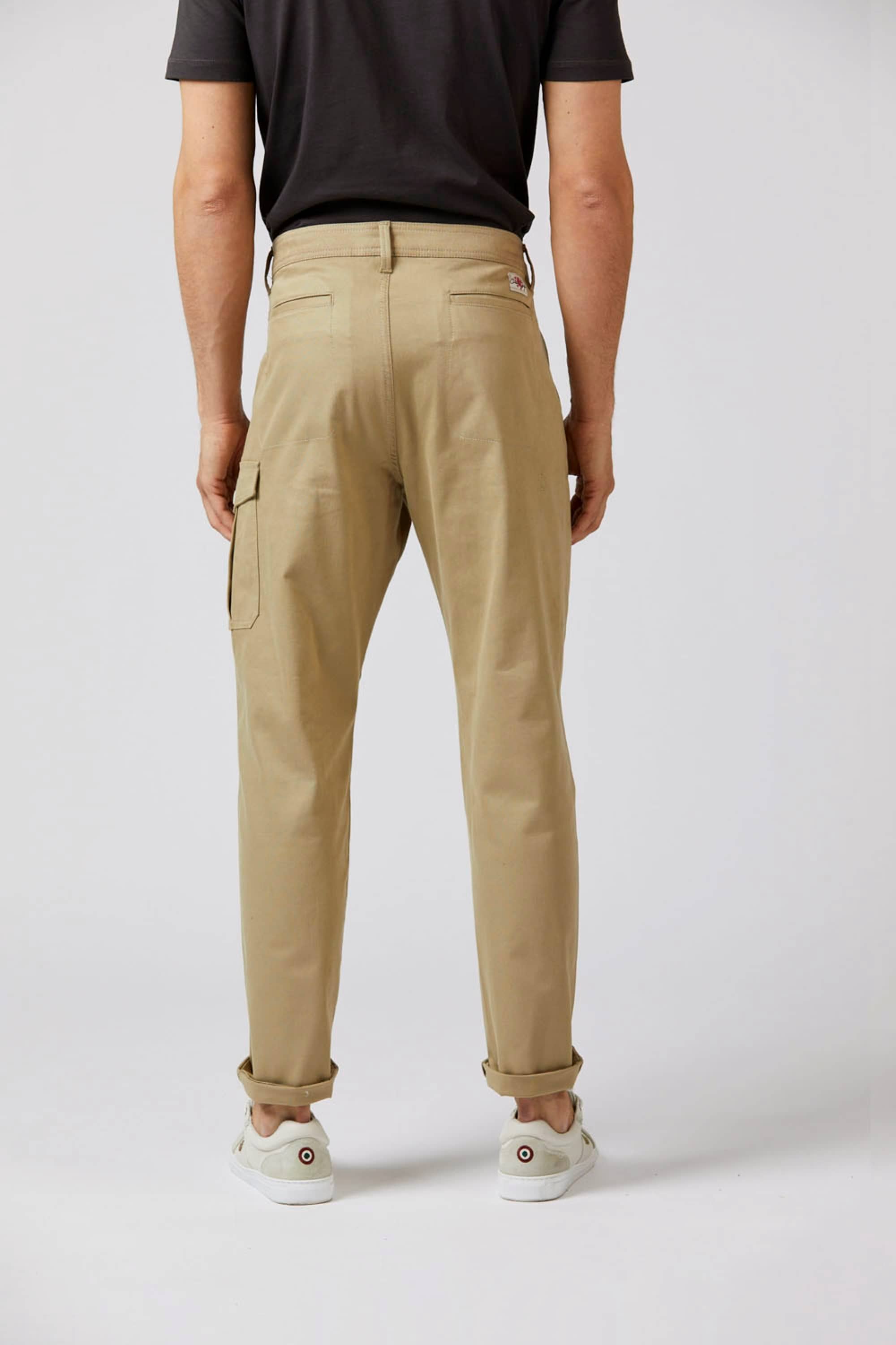⇒ Dwie kieszenie boczne oraz dwie tylne. Dodatkowa kieszeń cargo z logowaną patką zapinaną na guzik znajduje się na wysokości uda na lewej nogawce.