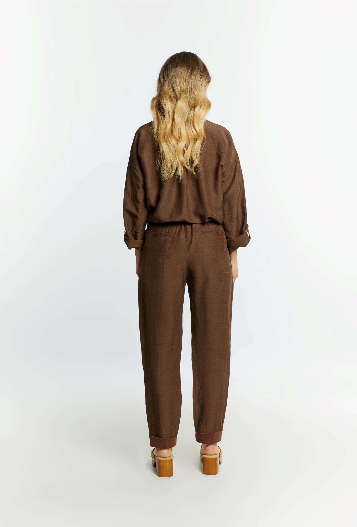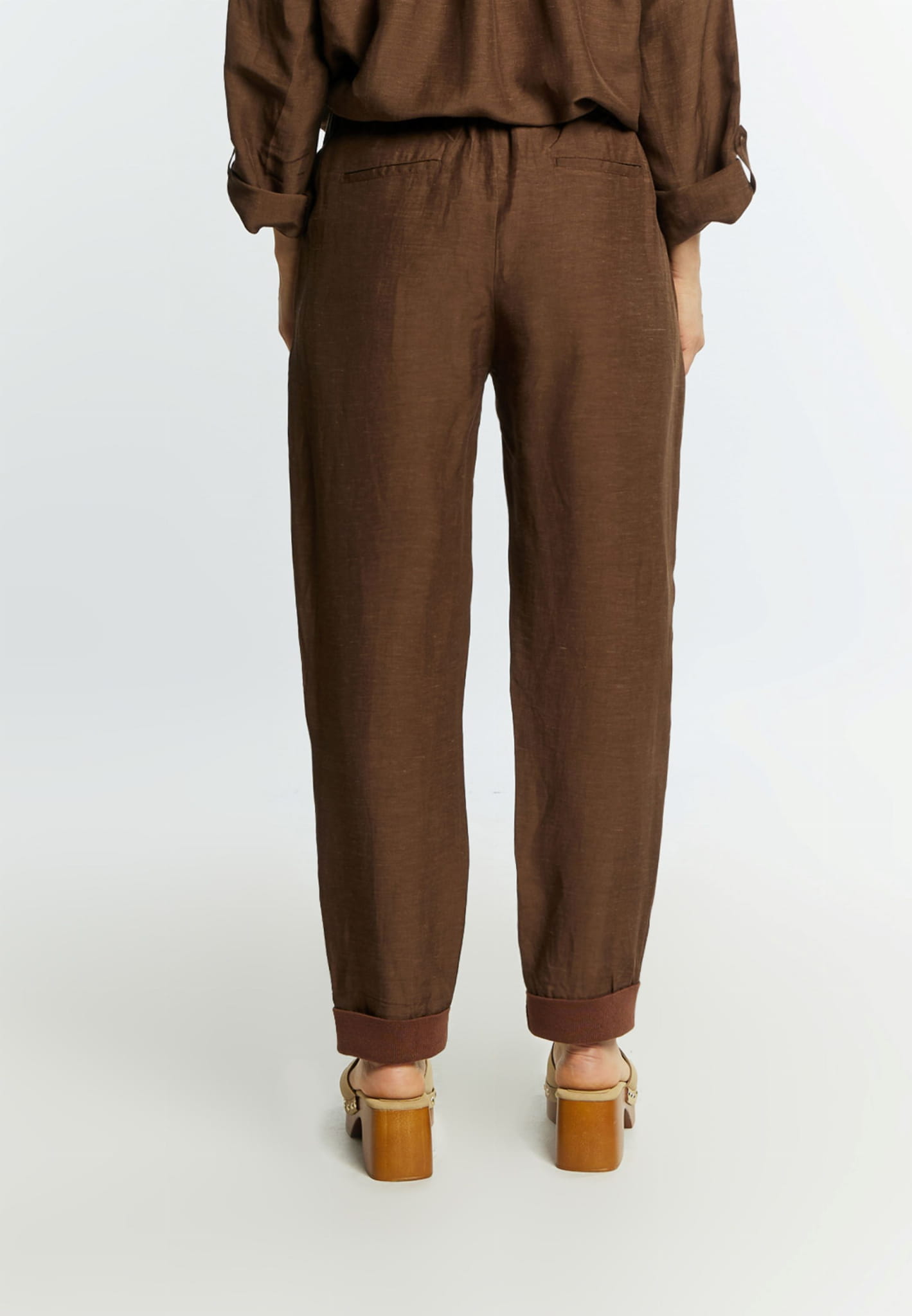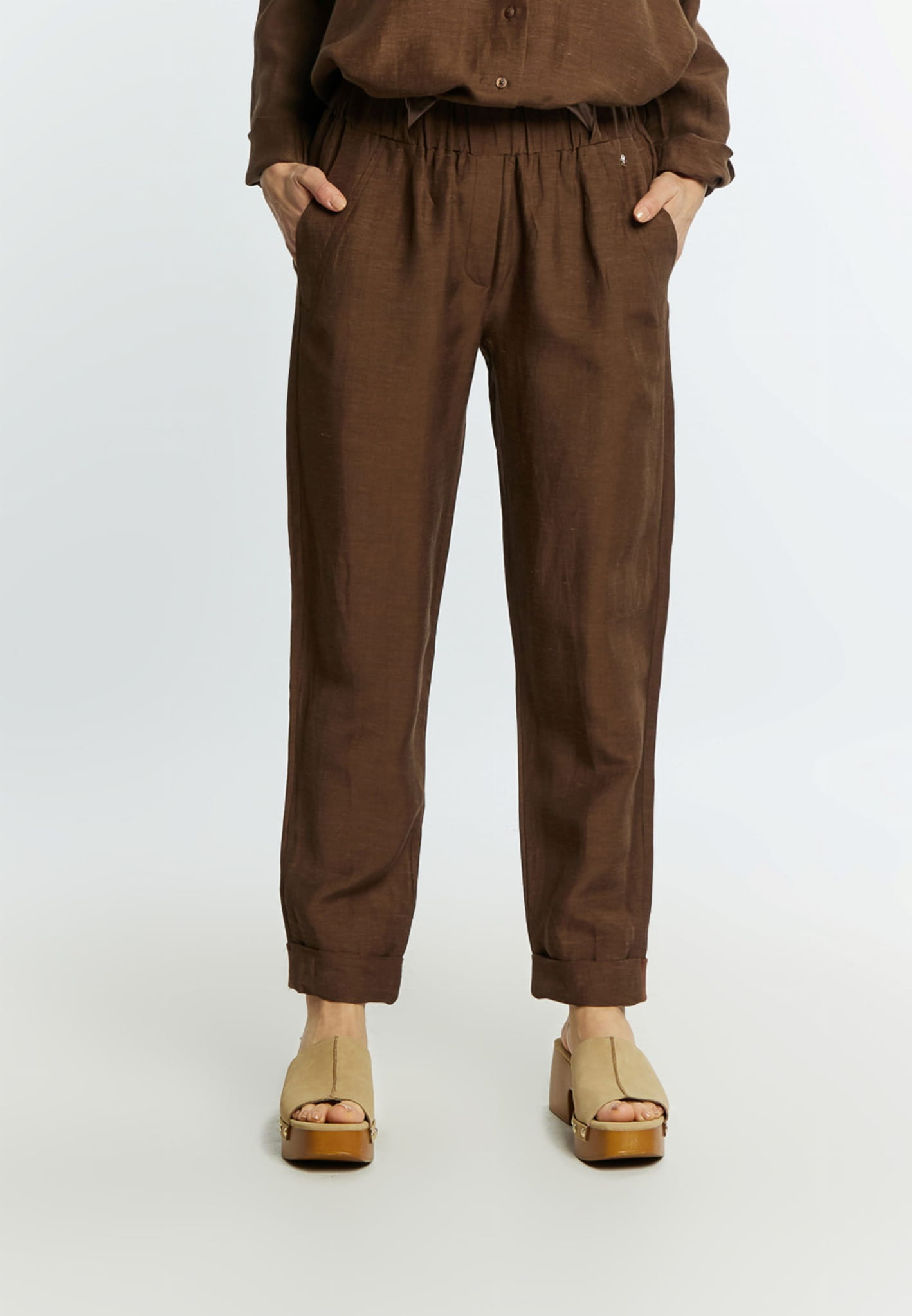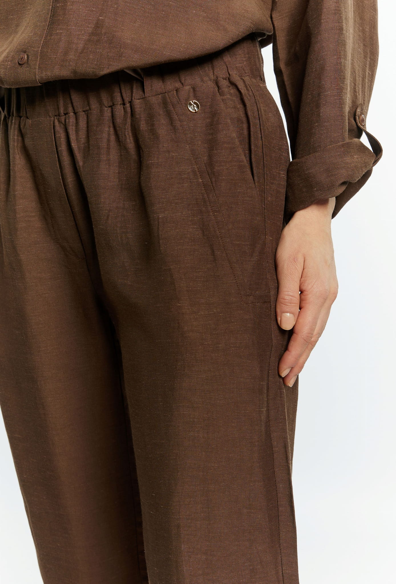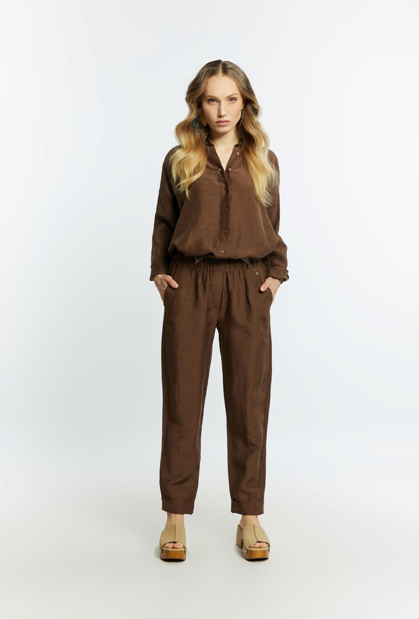 ⇒ Luźny swobodny krój z lekko zwężaną ku dołowi nogawką będzie pasował do każdego typu sylwetki, a jednolity brązowy kolor umożliwi tworzenie wielu niezwykłych i przyciągających wzrok stylizacji.