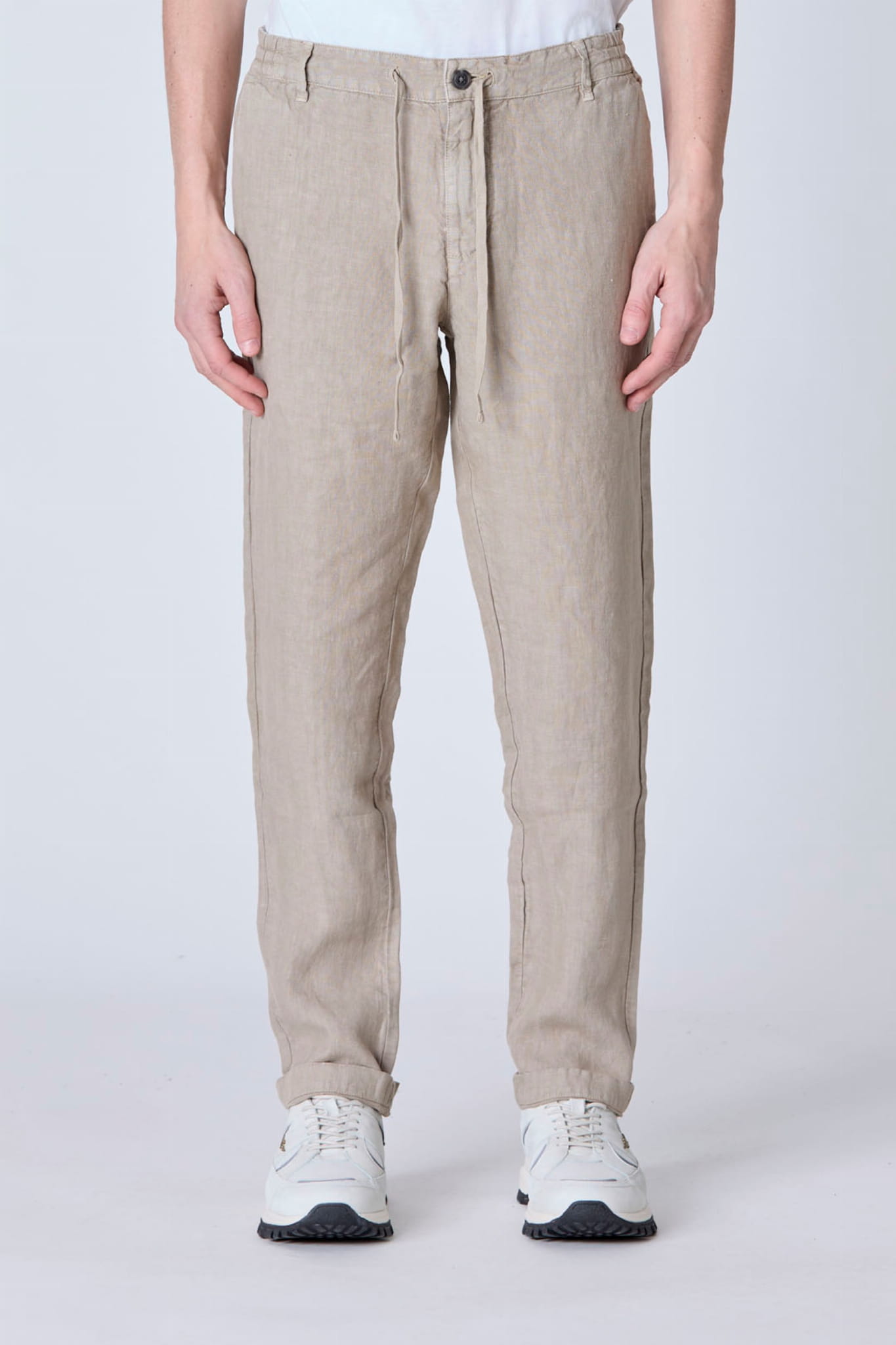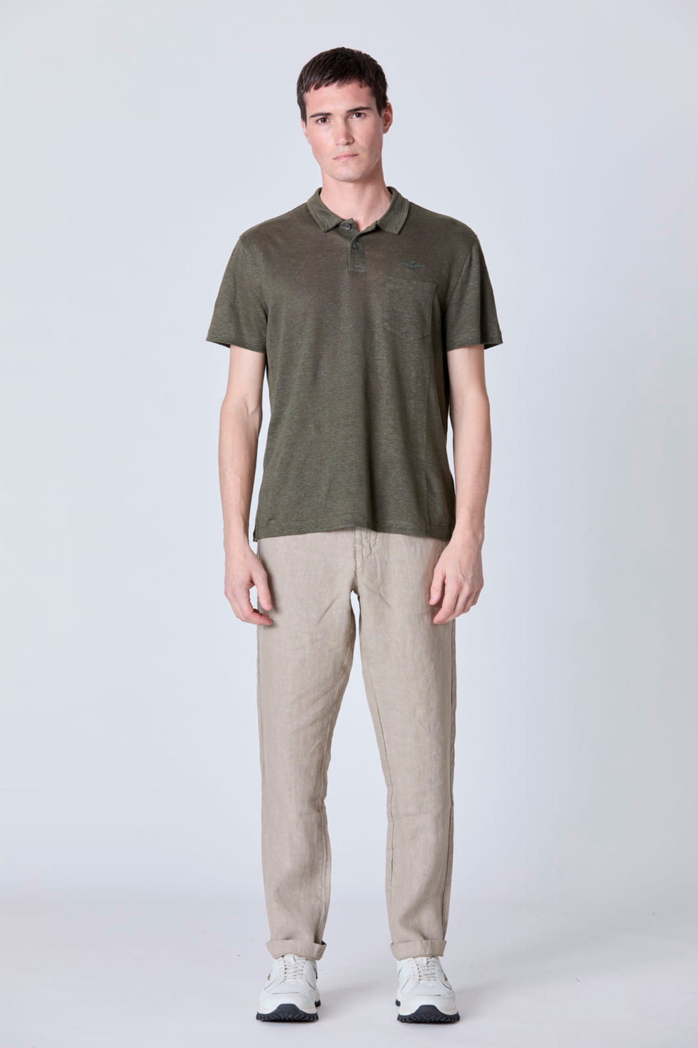 Męskie długie spodnie chinosy marki Aeronautica Militare, w kolorze spranego beżu.