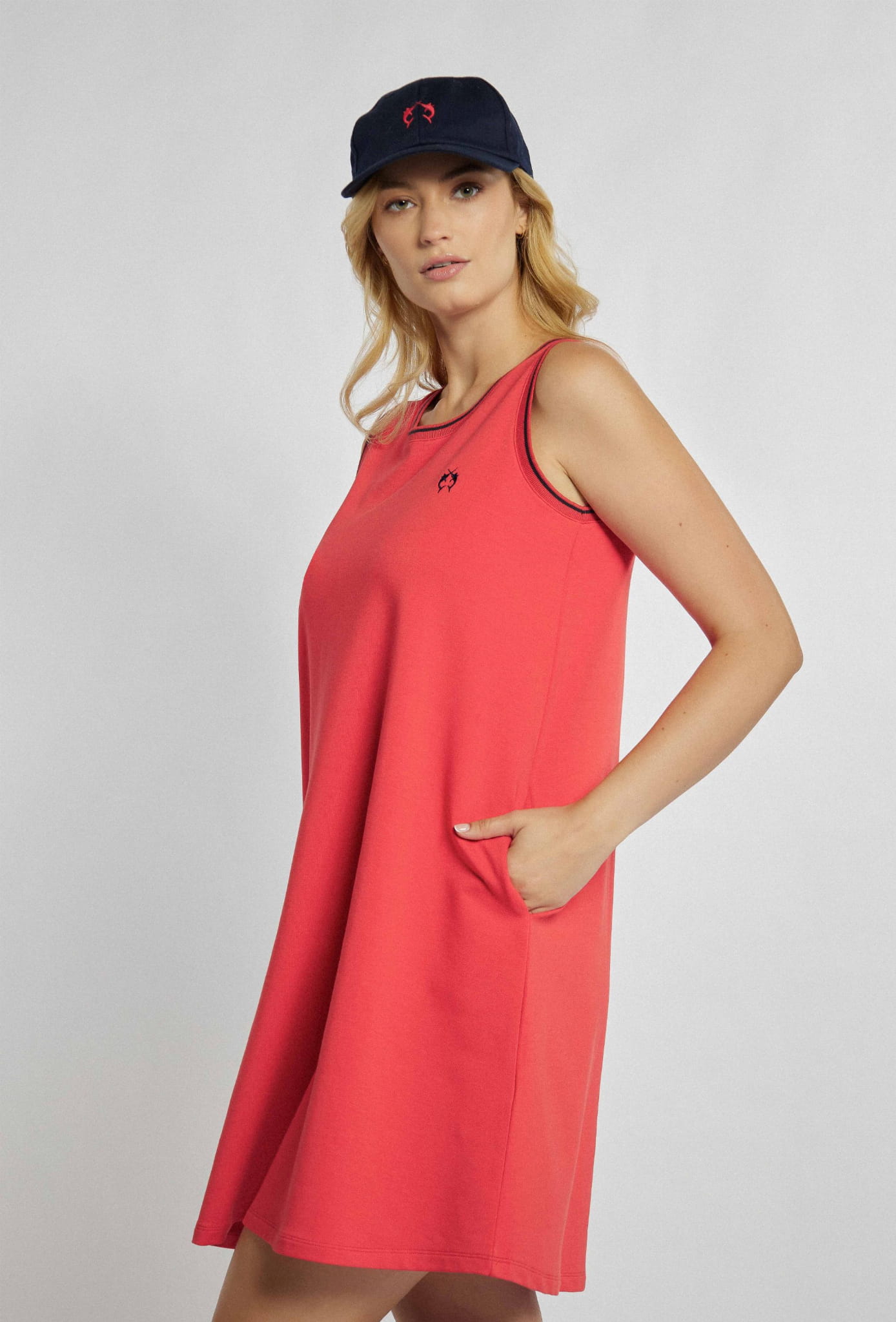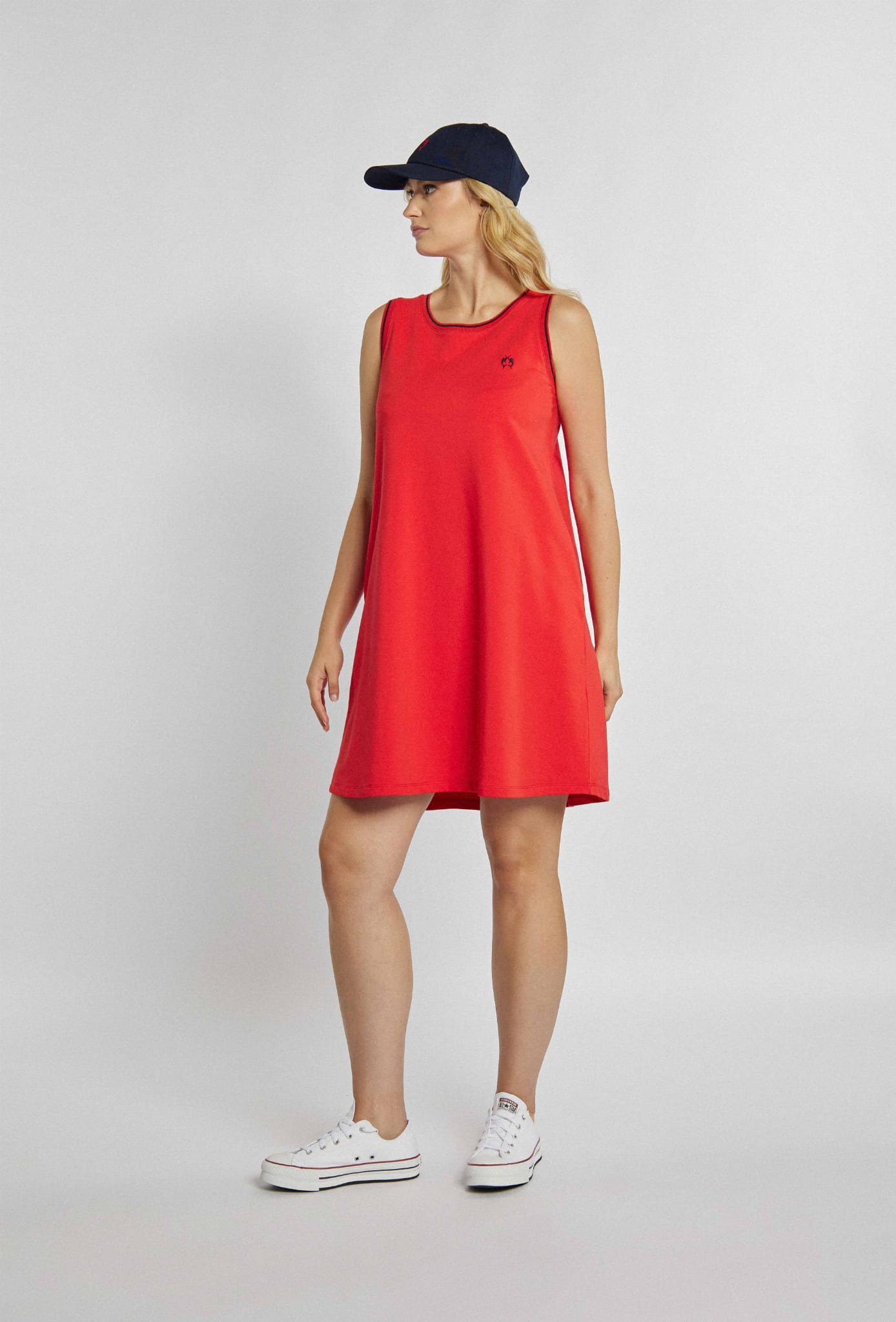 Damska krótka sukienka na ramiączka marki Campione, w kolorze czerwonym.