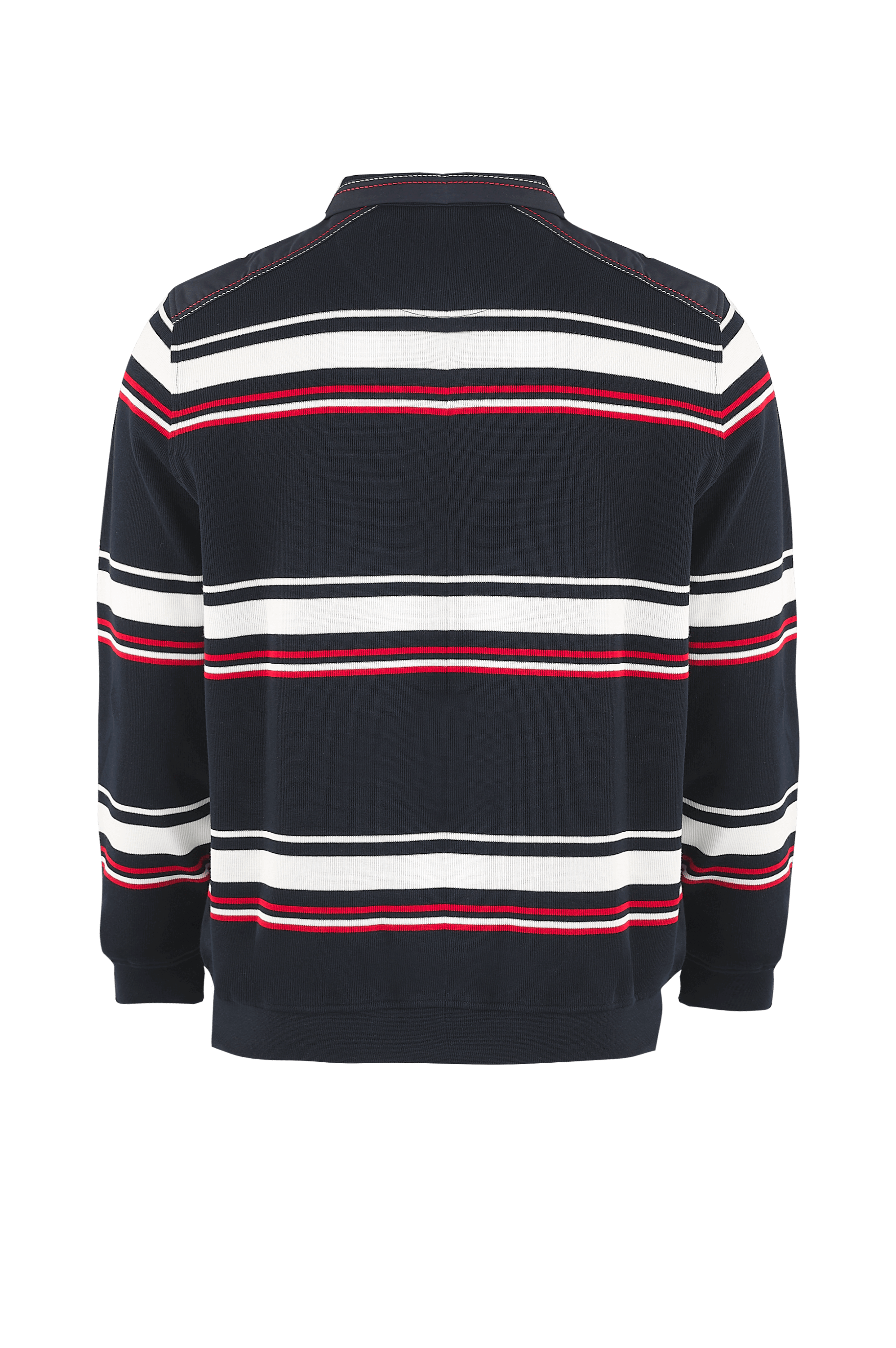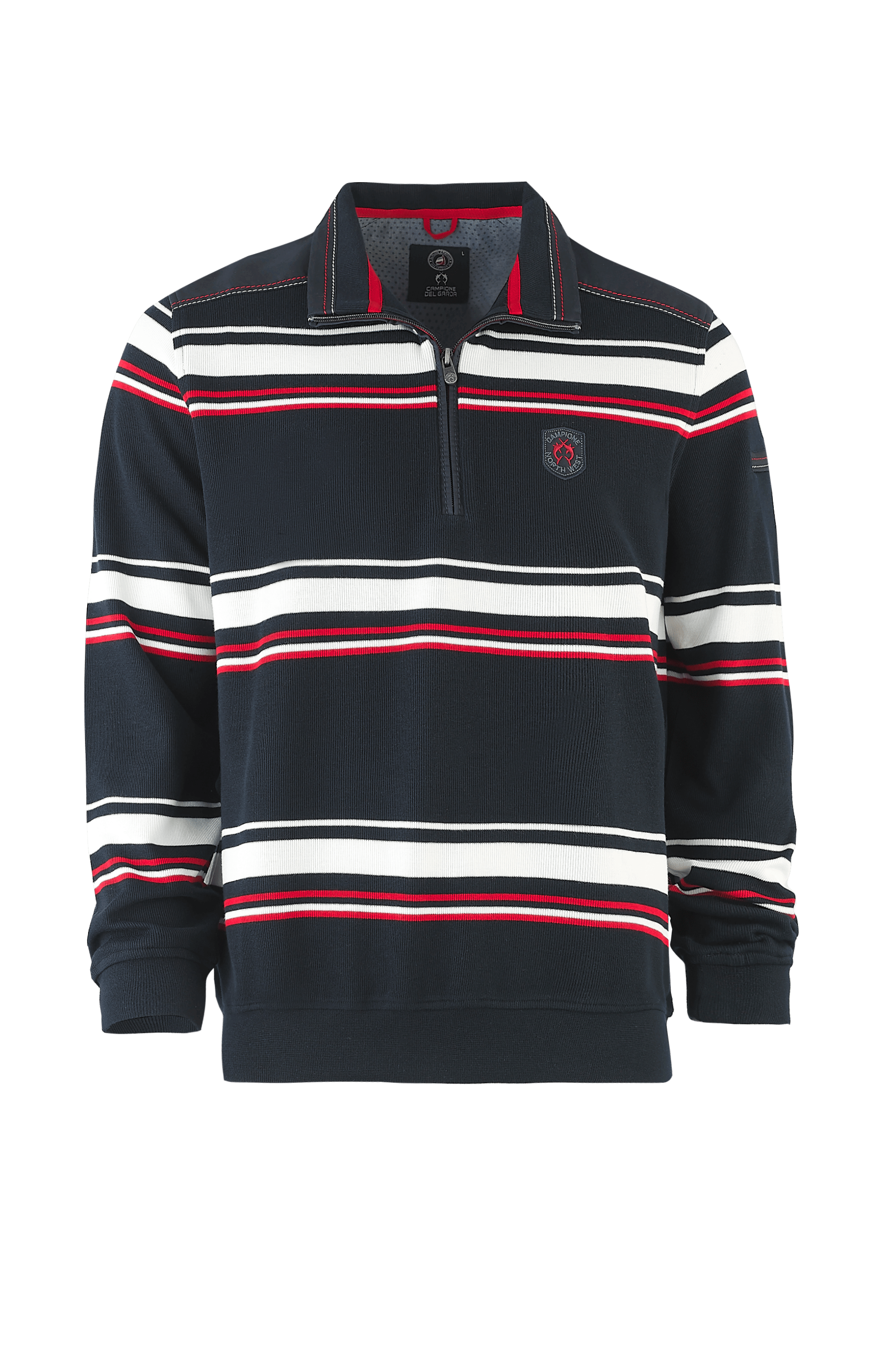 Męska bluza/sweter ze stójką marki Campione, w kolorze granatowym w biało-czerwone paski.
