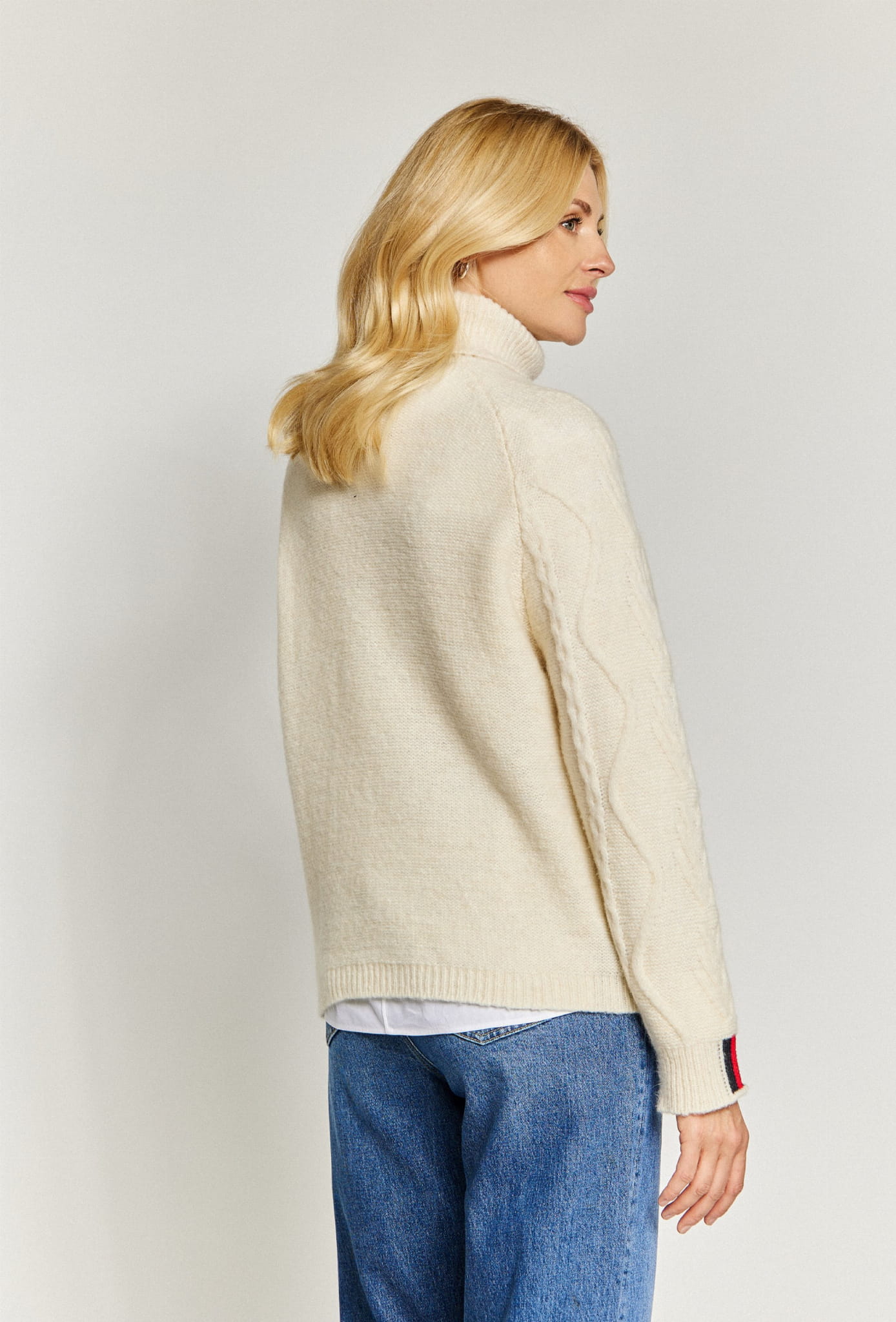 Damski sweter golf marki Campione, w kolorze kremowym.