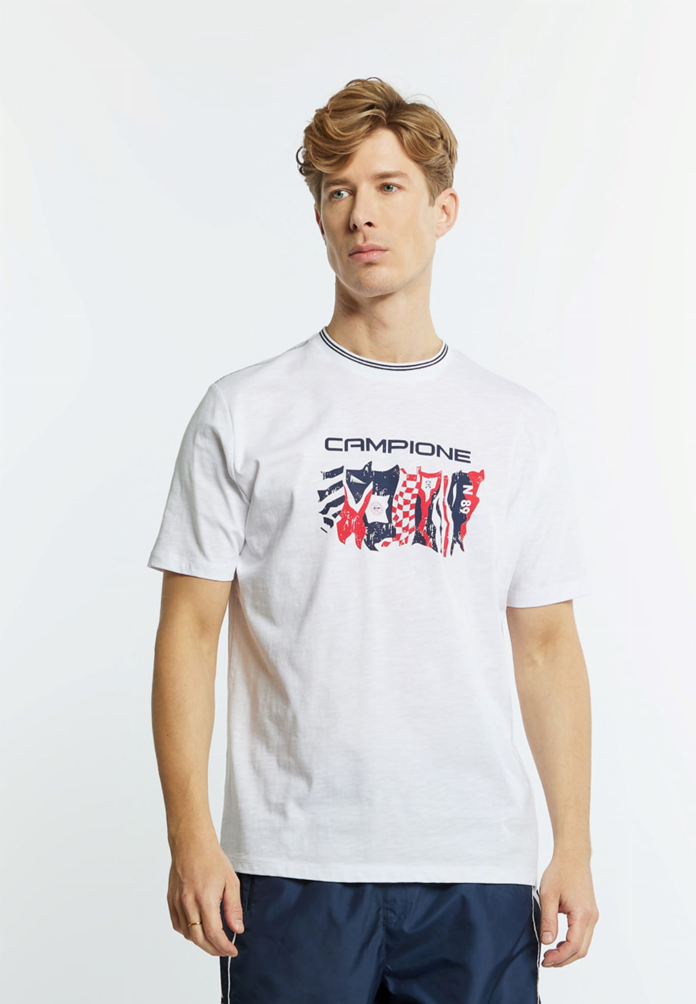 Męski t-shirt z krótkim rękawem marki Campione, w kolorze białym.