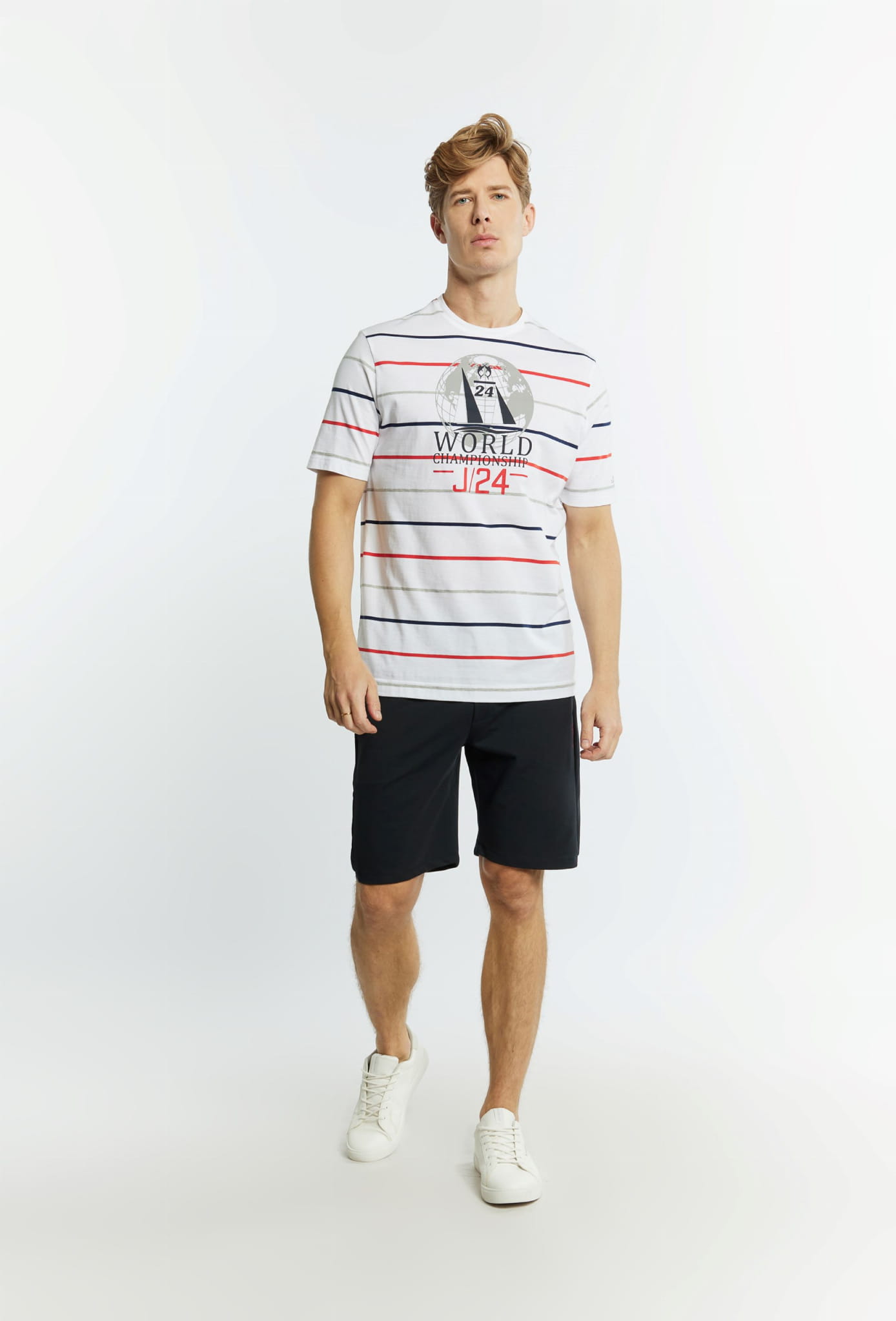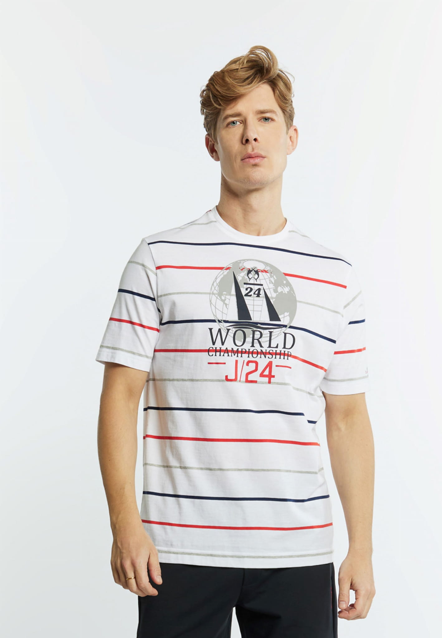 ⇒ Przód zdobi kolorowy duży nadruk o yachtingowym charakterze.