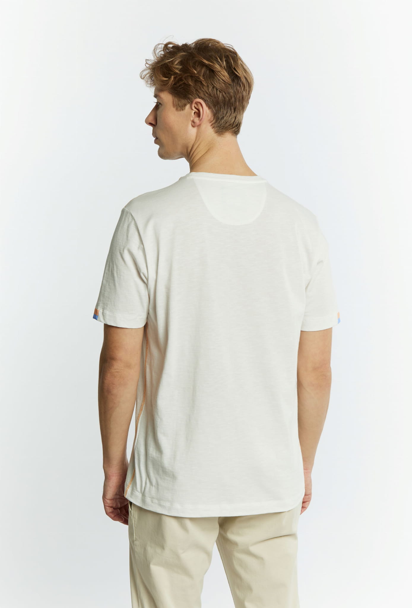 Męski t-shirt z krótkim rękawem marki Campione, w kolorze kremowym.