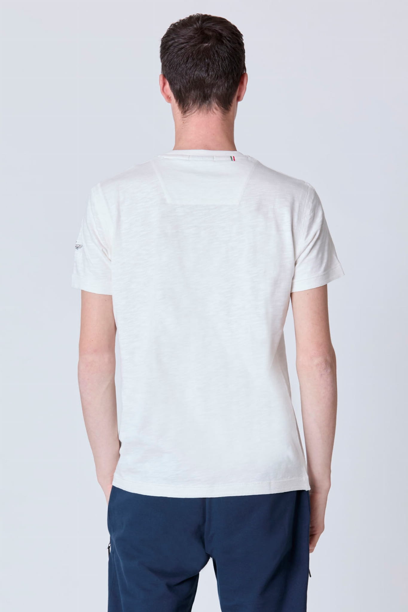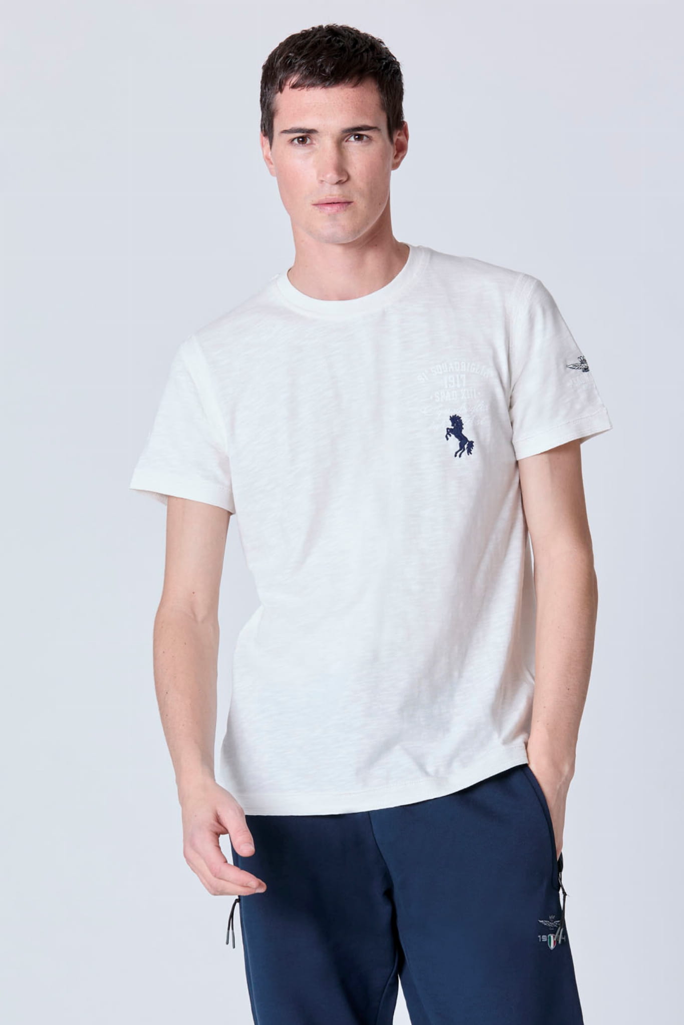 Męski t-shirt z krótkim rękawem marki Aeronautica Militare, w kolorze białym.