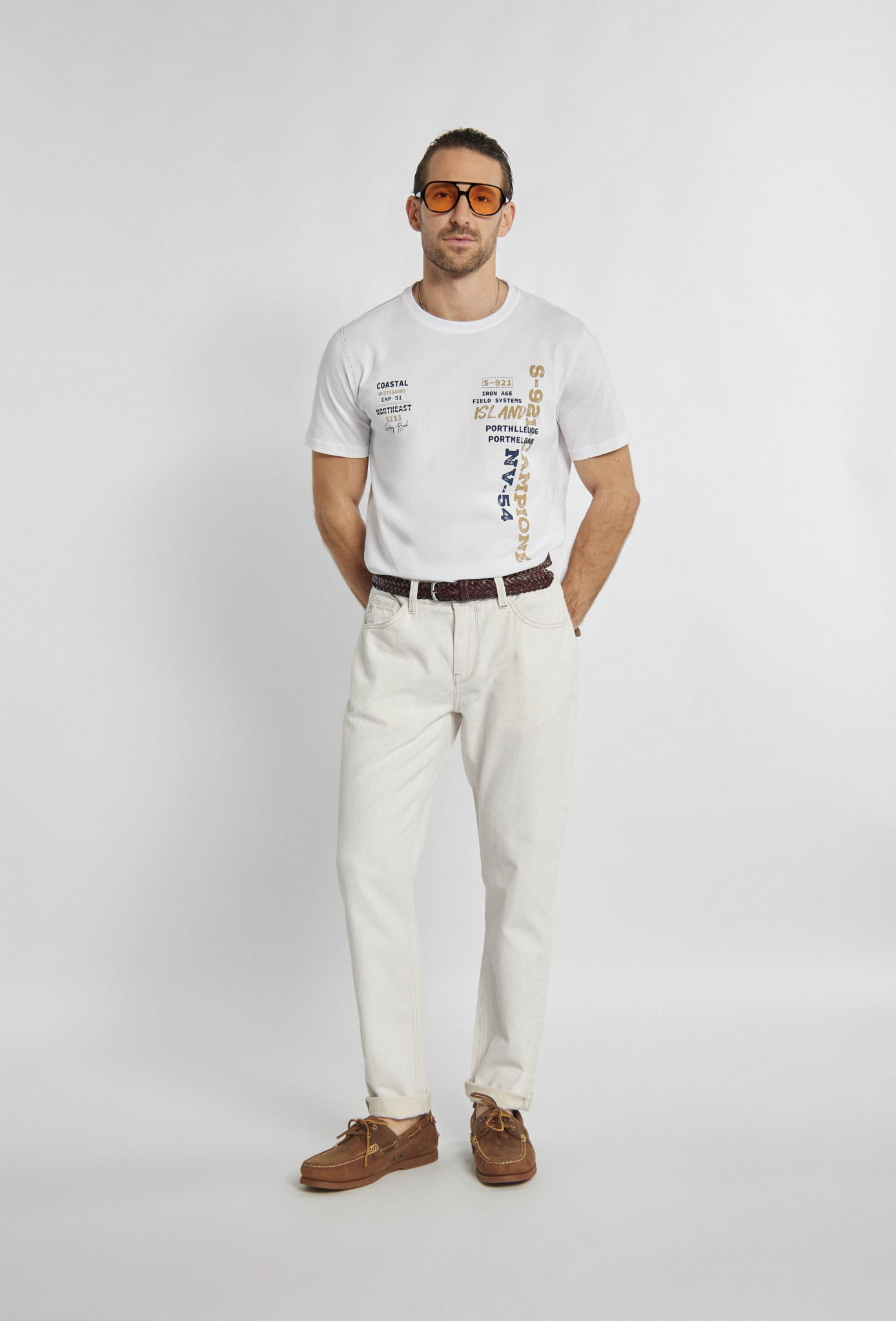 ⇒ Przód zdobi kolorowy duży nadruk o yachtingowym charakterze.