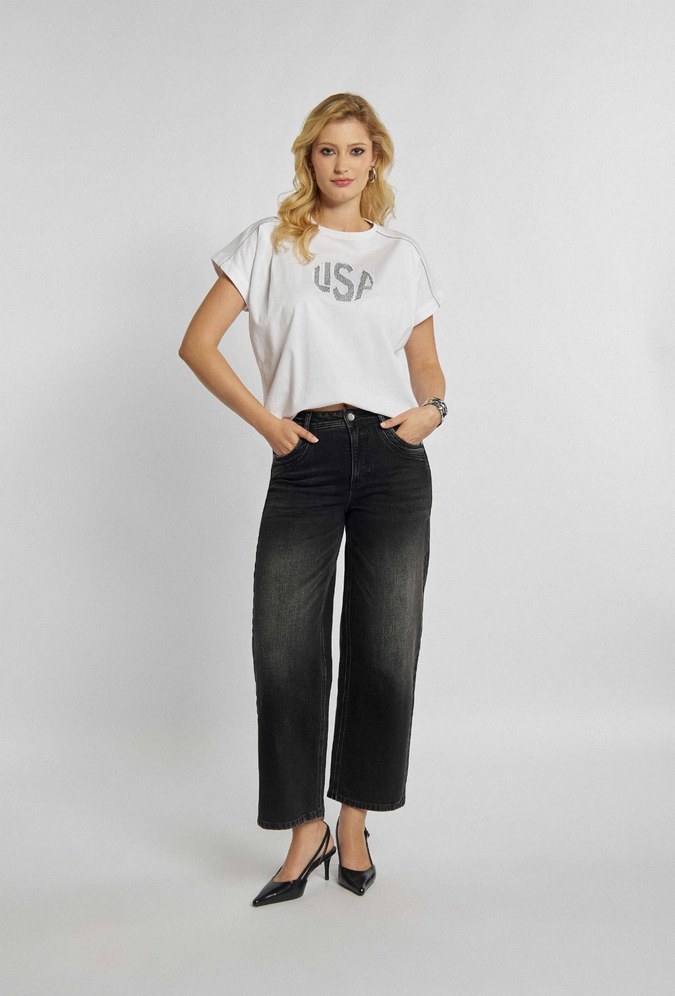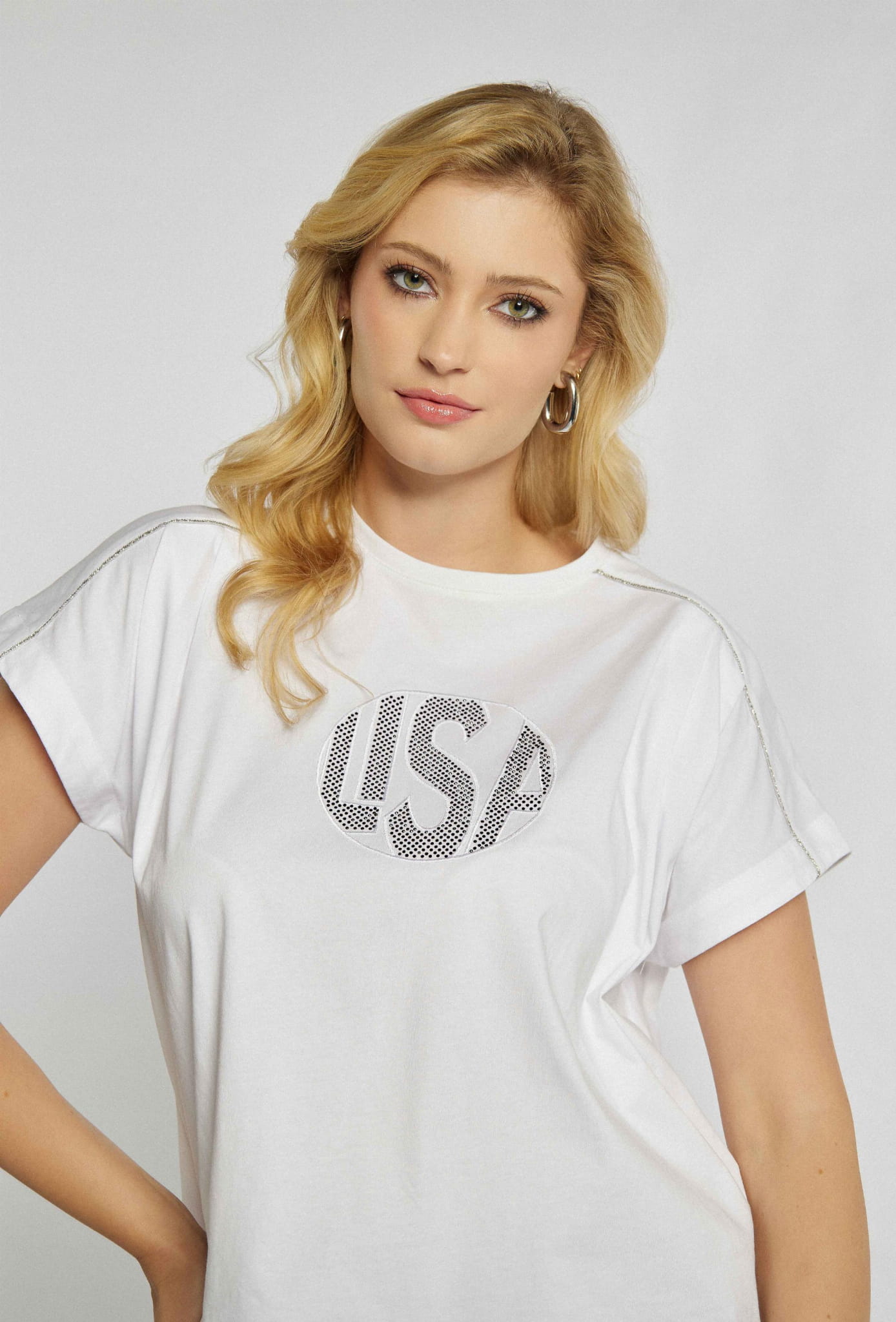 ⇒ Z przodu na wysokości klatki piersiowej znajduje się okrągły, przyciągający wzrok haft z ciemnymi kryształkami układającymi się w słowo "LISA".