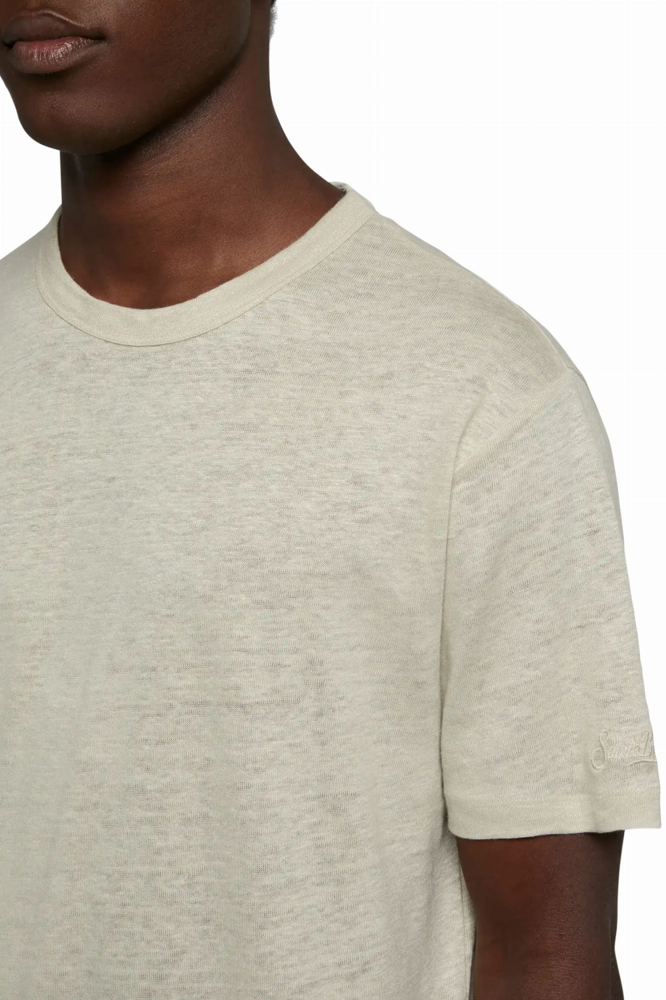Męski t-shirt z krótkim rękawem marki MC2 Saint Barth, w kolorze beżowym.