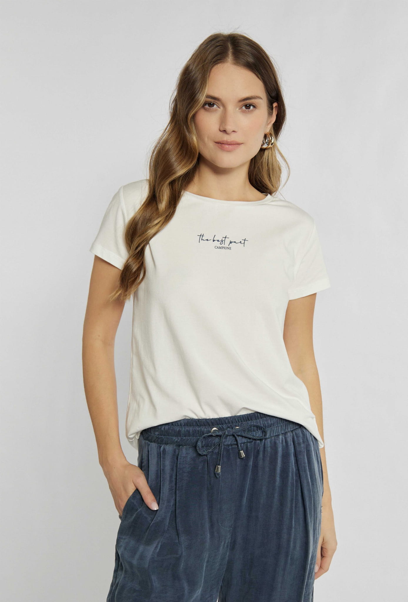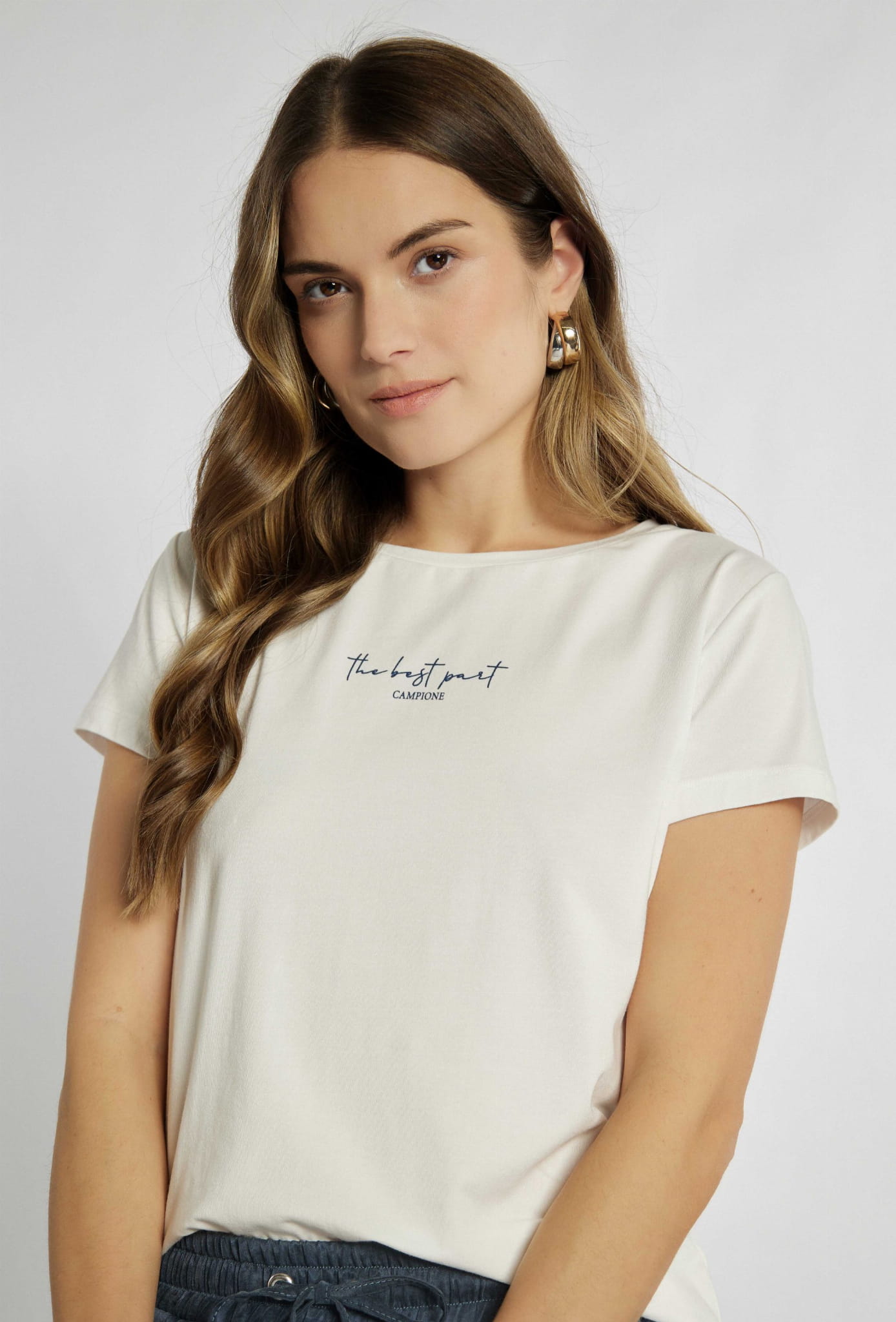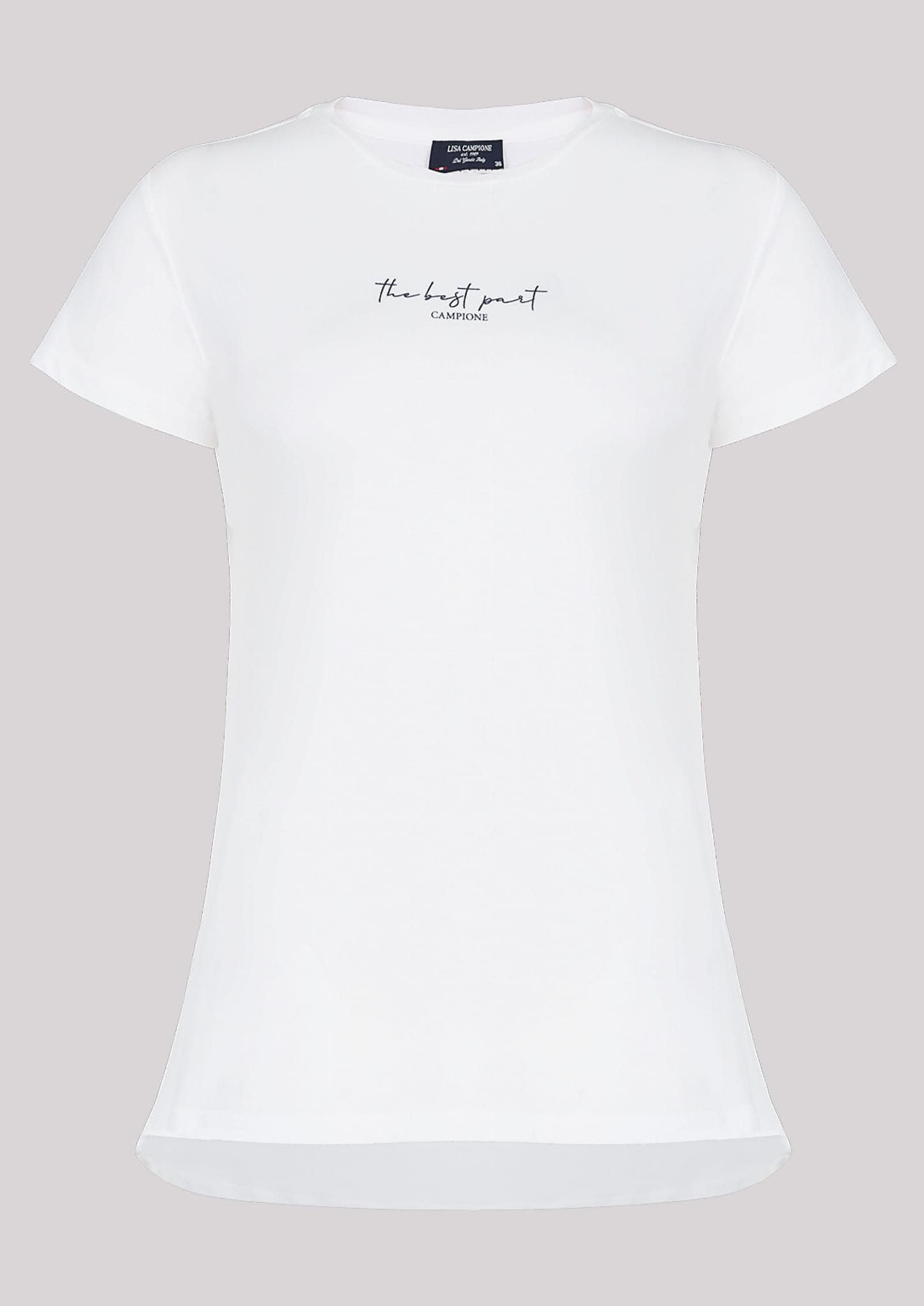 ⇒ Na wysokości klatki piersiowej znajduje się mała aplikacja w formie napisu "The best part CAMPIONE".