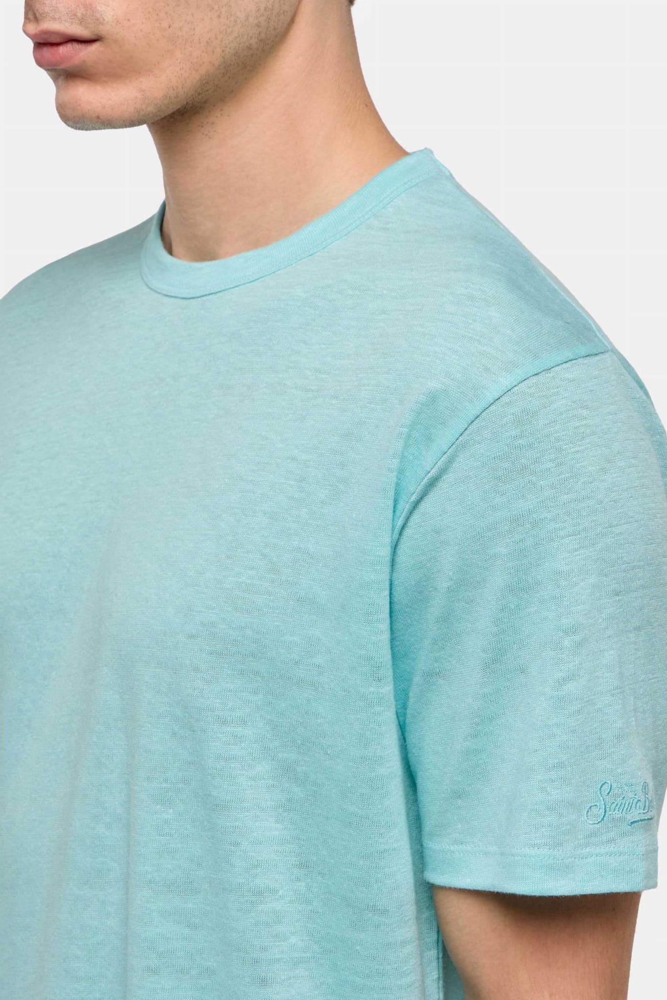 Męski t-shirt z krótkim rękawem marki MC2 Saint Barth, w kolorze niebieskim.