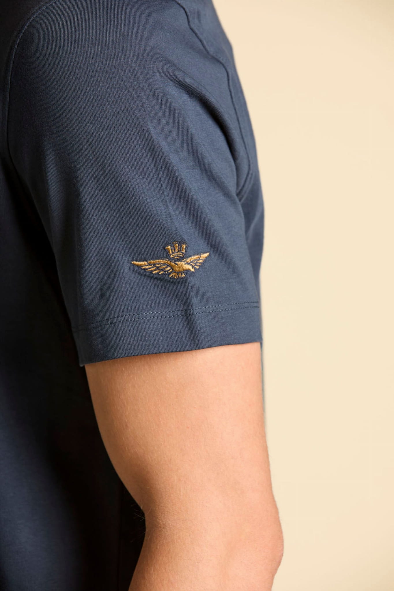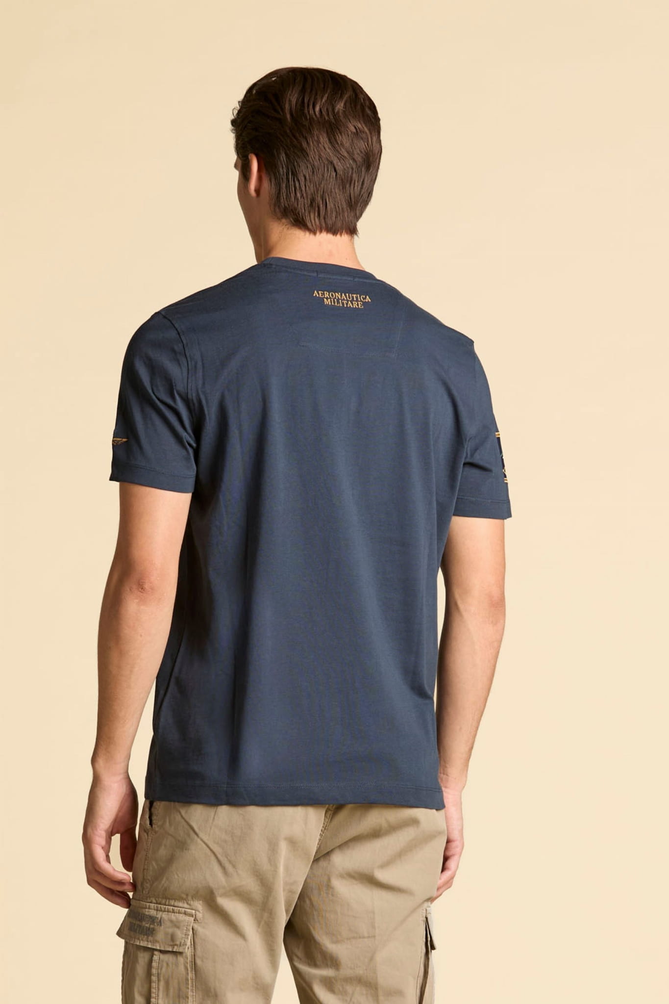 Męska koszulka t-shirt z krótkim rękawem marki Aeronautica Militare, w kolorze granatowym.