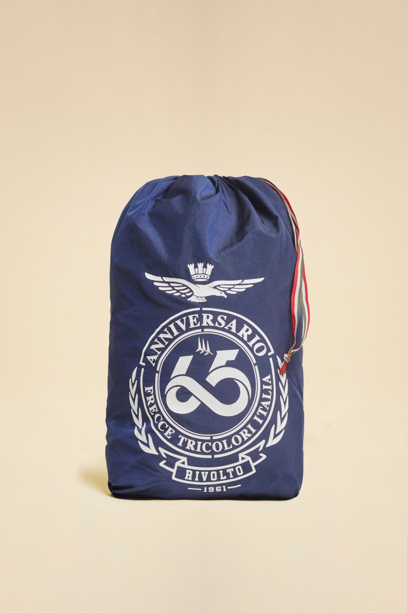 ⇒ Jej bohaterem jest oficjalne logo 65. rocznicy istnienia Frecce Tricolori: nowoczesny i dynamiczny znak graficzny oparty na liczbie 65, wymodelowany na wzór nieskończoności, symbolizujący ciągłość w czasie i nieskończonego ducha Frecce Tricolori.