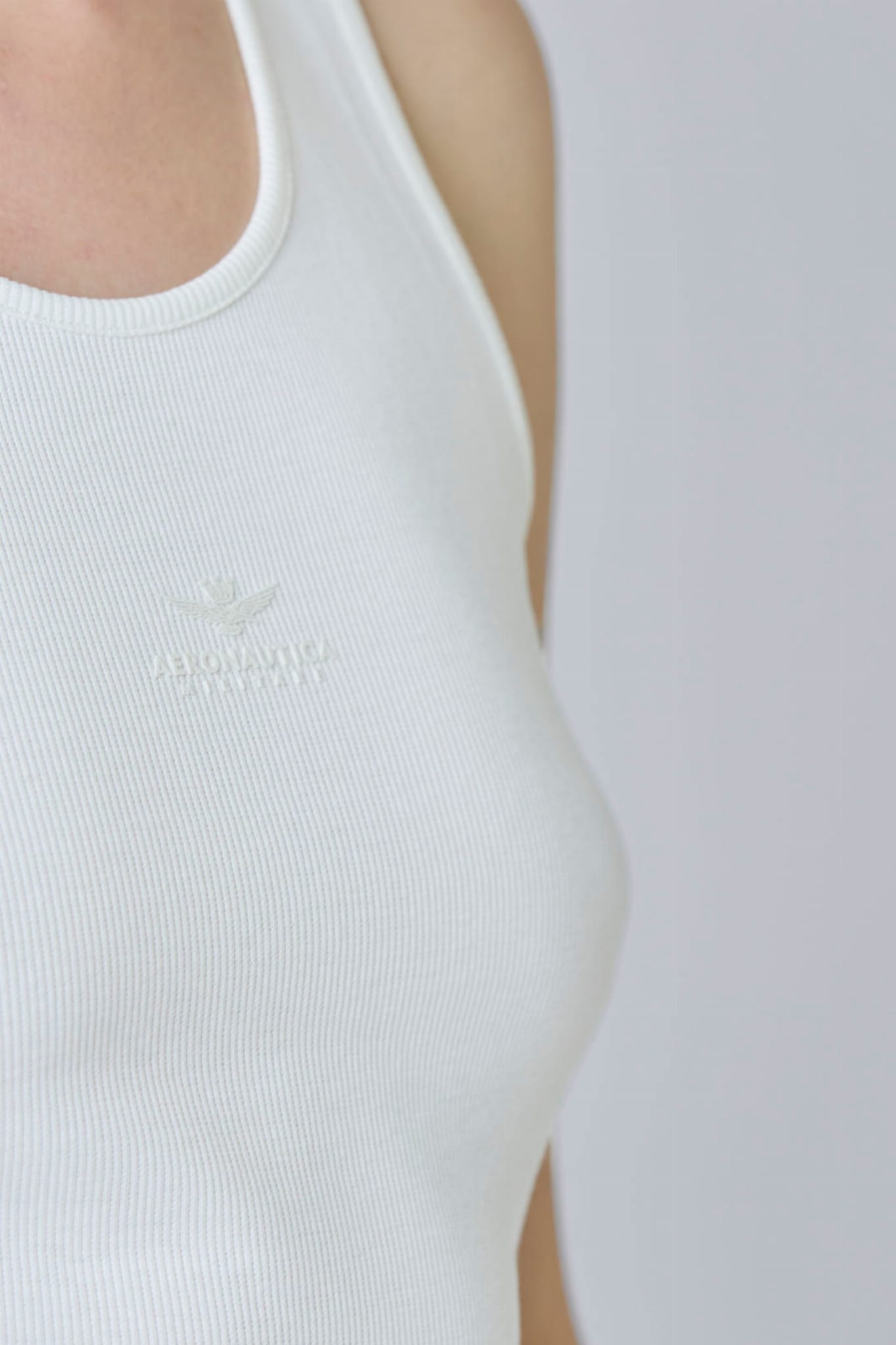 Damski top marki Aeronautica Militare, w kolorze białym.
